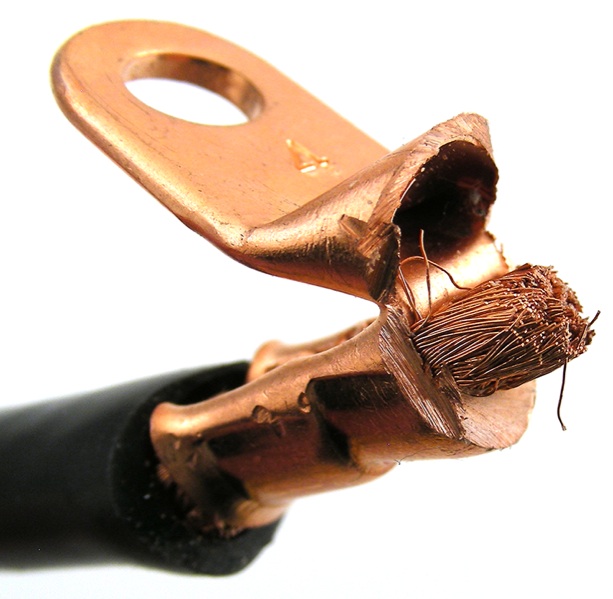 It is 99.99% Oxygen Free Copper from tip to tip and can effectively flow 240+ amperes of current to start a motorcycle (it will flow 70 amps all day long).