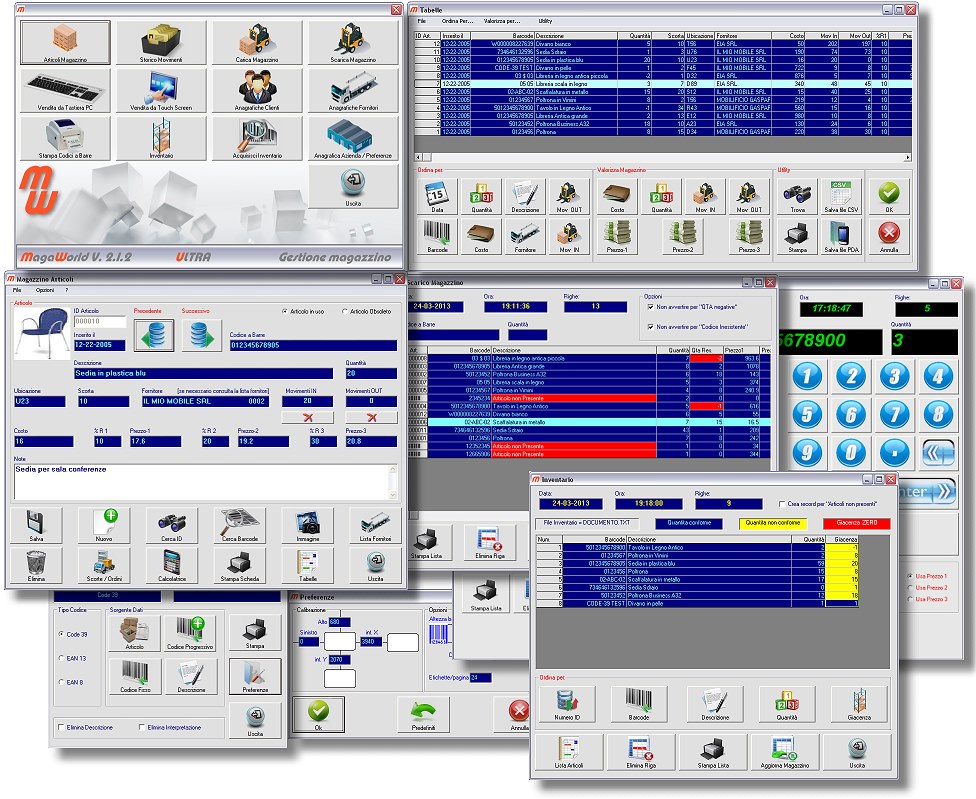 Caratteristiche principali del Software MAGA WORLD LIGHT | | Rinnovo EURO 9,00 / anno a partire dal secondo anno… | Anagrafica Fornitori con ricerche alfabetiche / numeriche / stato / citta etc… | Articoli con 3 listini prezzi personalizzabili, possibilita di incrementi automatici percentuali e gestione decimali | Anagrafica aziendale | Tabelle di Valorizzazione Magazzino per Movimenti IN /OUT, Costo, Prezzo 1/2/3, Pezzi in giacenza, etc… | Ricerche e ordinamento per Data di carico, Fornitore, Movimenti IN / OUT, Quantita, Costo Prezzo 1/2/3 | Gestione Scorte minime con segnalazione articoli “sotto scorta” | Data Base Articoli con fotografia, Ubicazione di magazzino e Note | Ordini a Fornitori in Automatico per tutti gli articoli “sotto Scorta”, Ordini a fornitori generici | Esportazione Files Articoli in CSV (Excel, etc…) | Stampe di tutte le tabelle, generale articoli, giacenze, sotto scorta, etc… | Stampa schede articoli dettagliate | Carico di Magazzino con lettore Codici a Barre Manuale | Carico di Magazzino con lettore Codici a Barre Automatico (Terminale Portatile con memoria) | Scarico di Magazzino con lettore Codici a Barre Manuale | Scarico di Magazzino con lettore Codici a Barre Automatico (Terminale Portatile con memoria) |