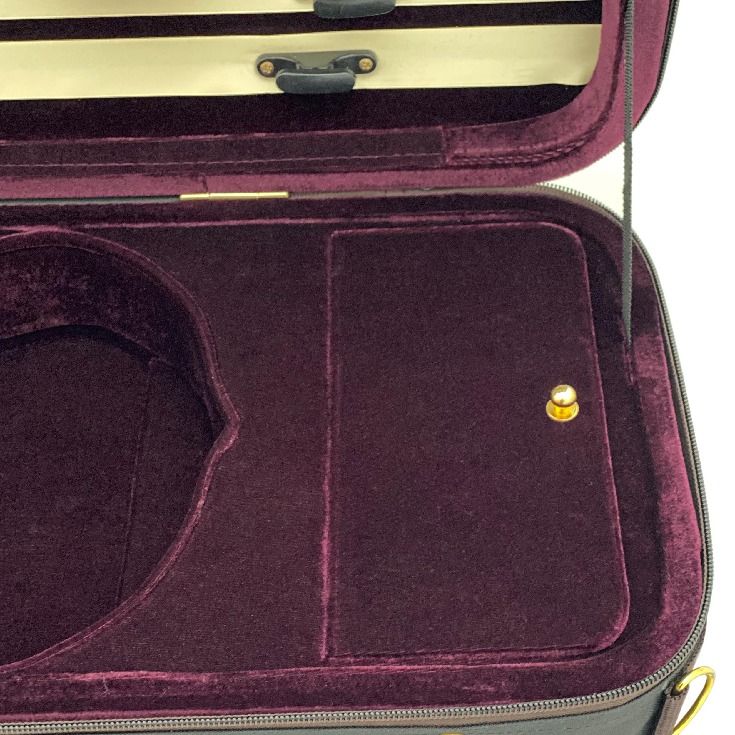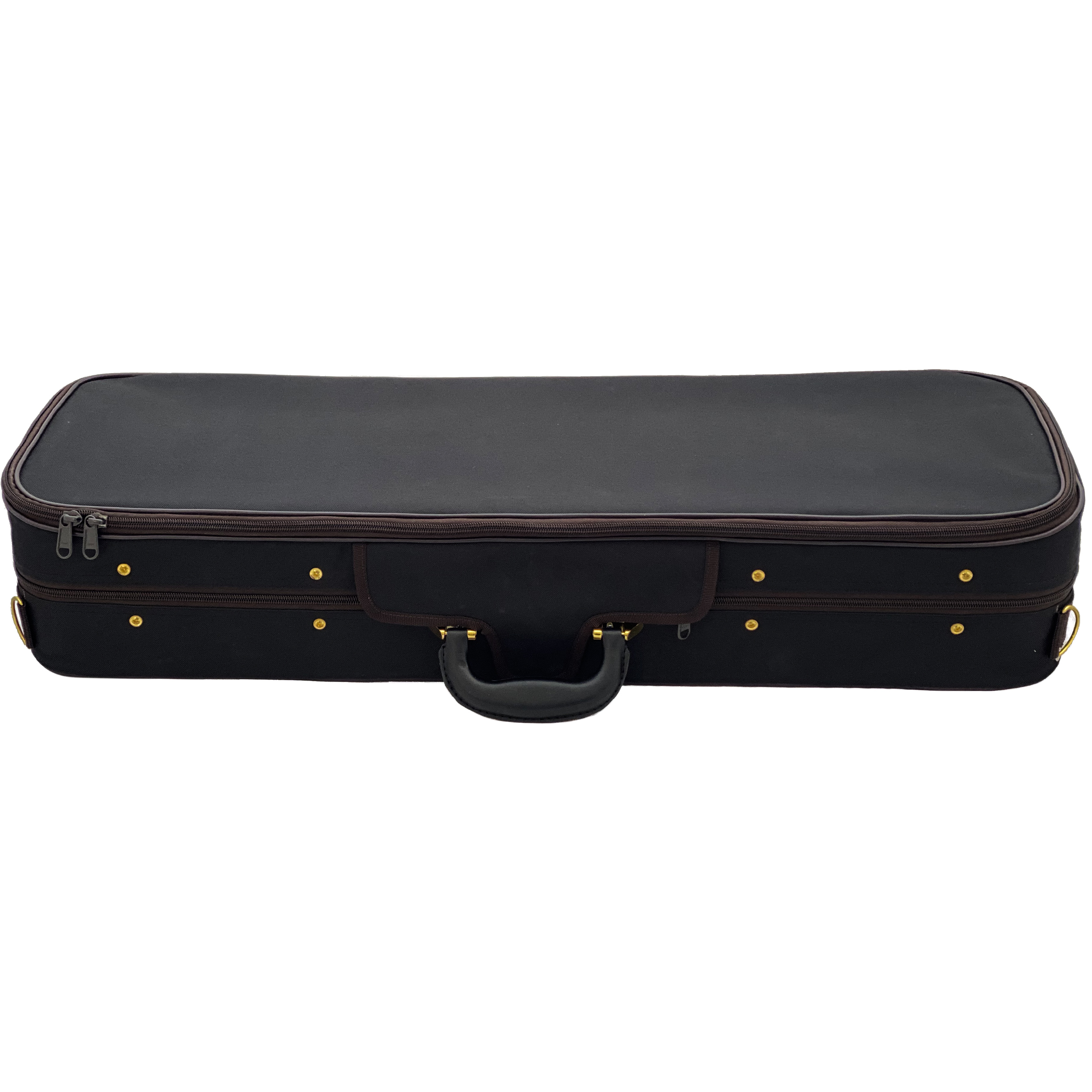 Protect your investment with this quality violin case. Lightweight oblong violin case, brass screws attached canvas case cover. Full-length zippered music sheet pocket, one large end pocket designed in right side. Matching blanket and Double shoulder strap.