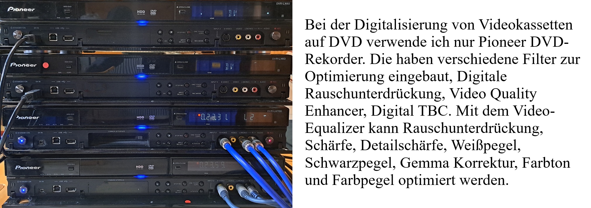 Herzlich Willkommen, hier finden Sie alles zum Thema Digitalisierung von Filmen. Digitalisierung von Videokassetten aller Art: Betamax, Mini-DV, Video 8, Hi8 , Digital8 , VHS , VHS-C , S-VHS , S-VHS-C , Musikkassetten , Tonbänder, Super 8 Filme, Normal 8 Filme , 16mm Filme und Dias.