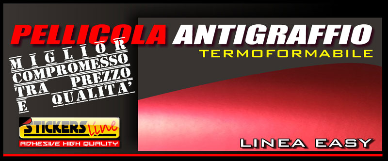 Pellicola ROSSO OPACO, cm 75x150 straordinariamente luminosa dall'effetto rosso metallico, colore davvero aggressivo! ideale per il wrapping, ad un costo contenuto potete personalizzare la vostra auto sia internamente che esternamente, o rendere ancora più aggressiva la vostra moto, oppure per rivestire ![]() CARATTERISTICHE: Pellicola antigraffio antistrappo Sistema microcanalizzato Air Free System (non crea bolle d’aria durante il montaggio) Applicazione facile e veloce (questa pellicola può essere rimossa più volte prima che faccia presa sull’oggetto) Termoformabile (può essere applicata anche su superfici curve, rivettate, sagomate e moderatamente bombate) Applicabile solo su superfici lisce rigide non porose e non gommose Su parti molto bombate o concave è consigliabile utilizzare il primer per facilitare l'adesione della pellicola ed evitare che si possa staccare Massima resistenza contro tutti gli agenti atmosferici Può essere lavata con le spazzole in autolavaggio.
