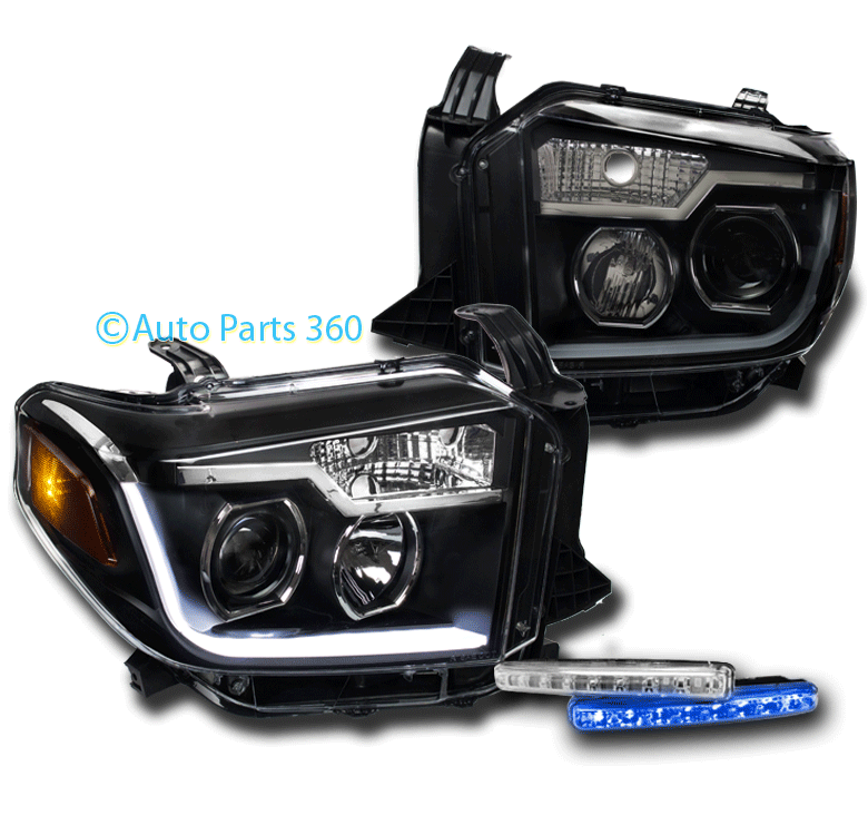 For 2014-2017 Toyota Tundra LED Tube Projector Headlights with 6" Blue LED DRL Lights - Black | ||||||||||||||||||||