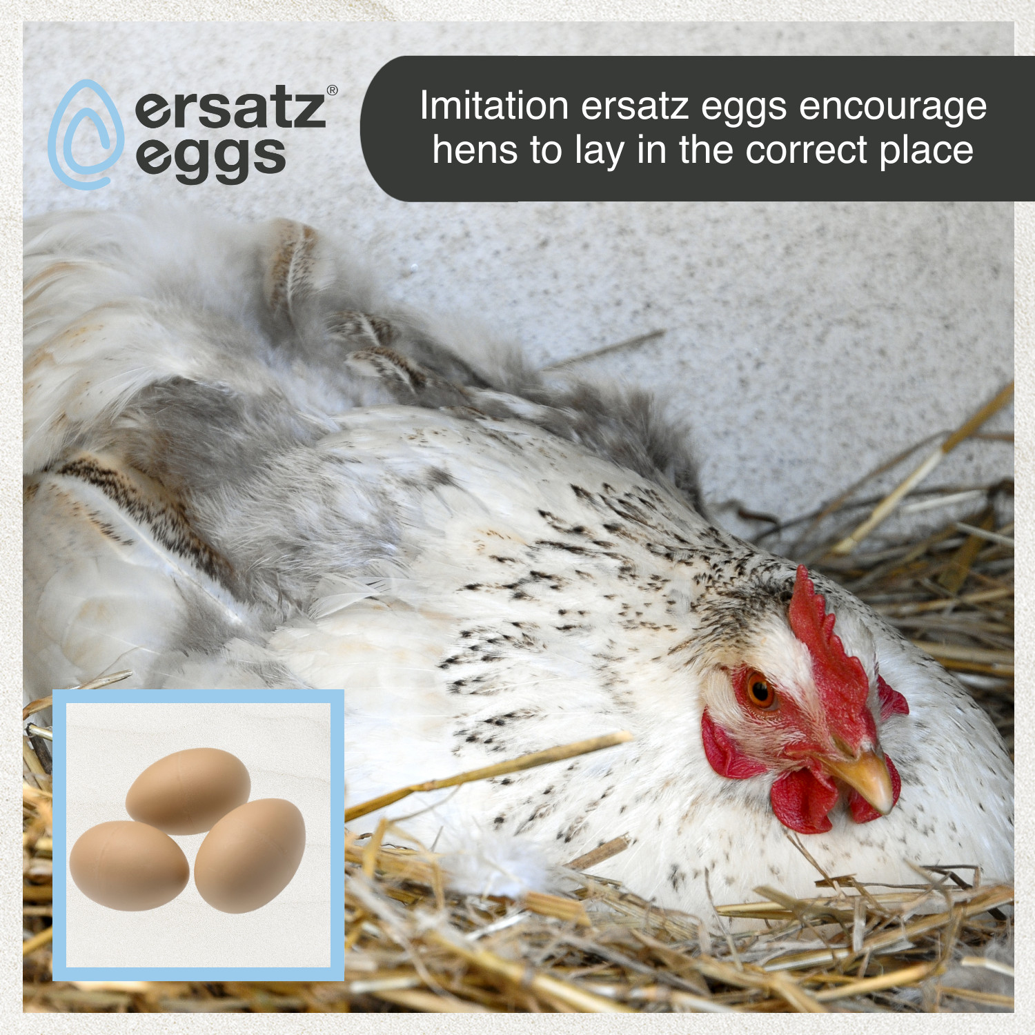 ersatz eggs is the registered brand name of Paul Norman Plastics Ltd, Stroud, Gloucestershire.