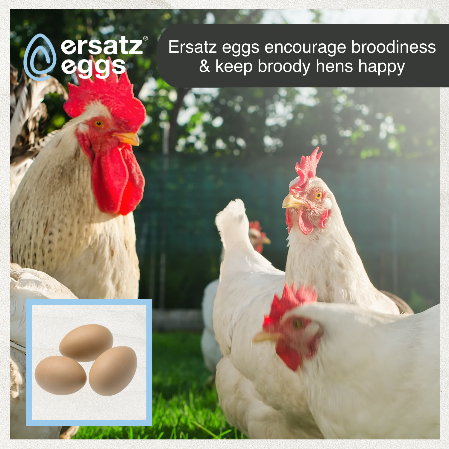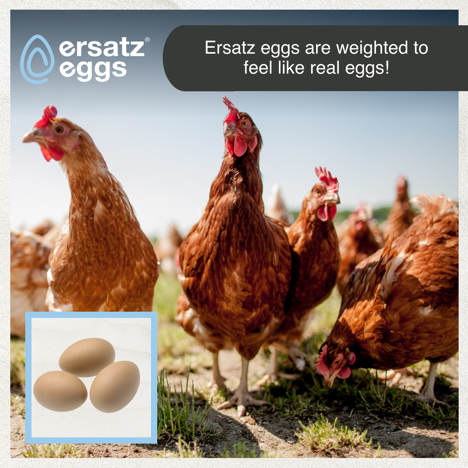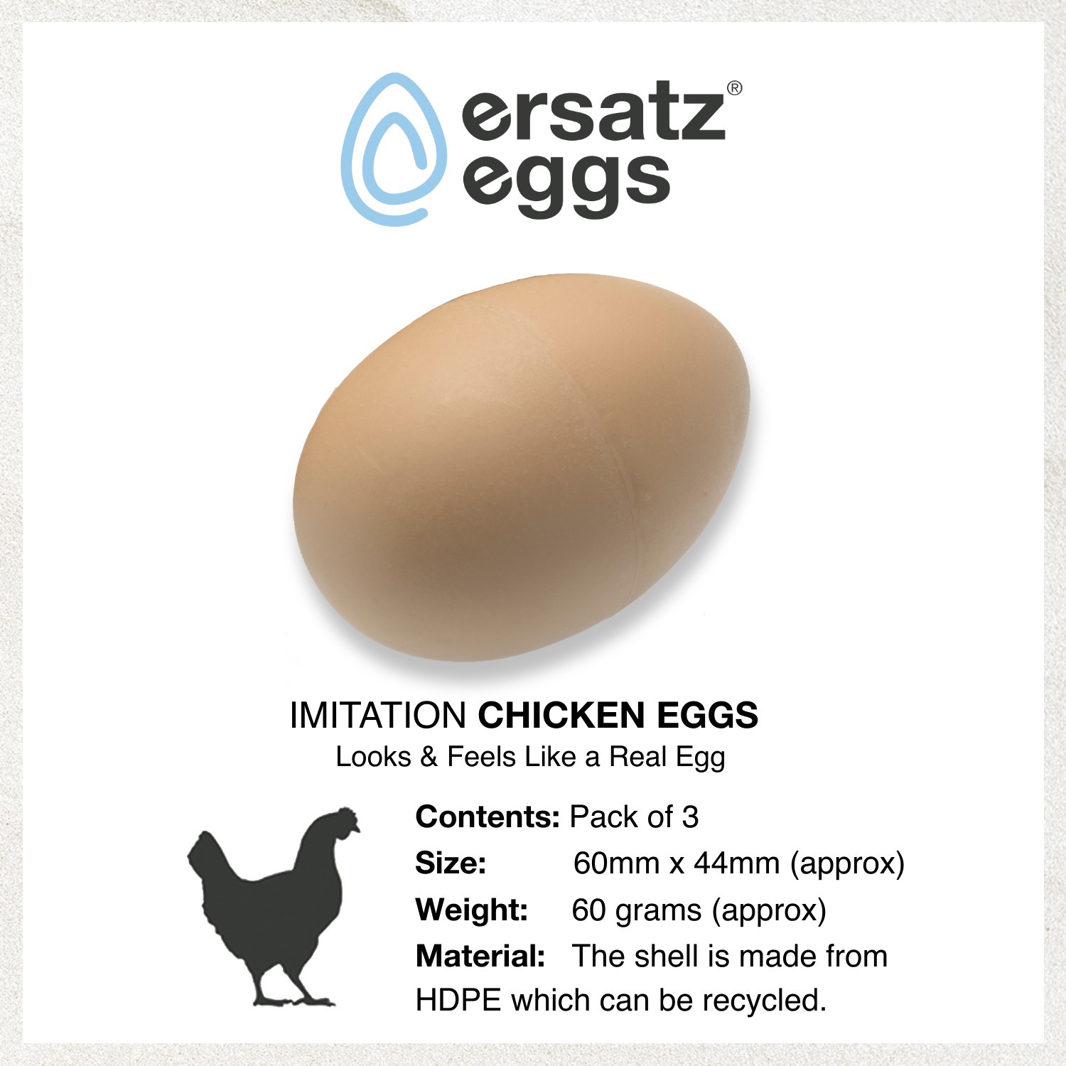 These are not to be confused with bouncy rubber eggs. Ersatz Eggs work just the same as artificial, wooden, china or ceramic eggs, but the main difference is that they feel like real eggs.