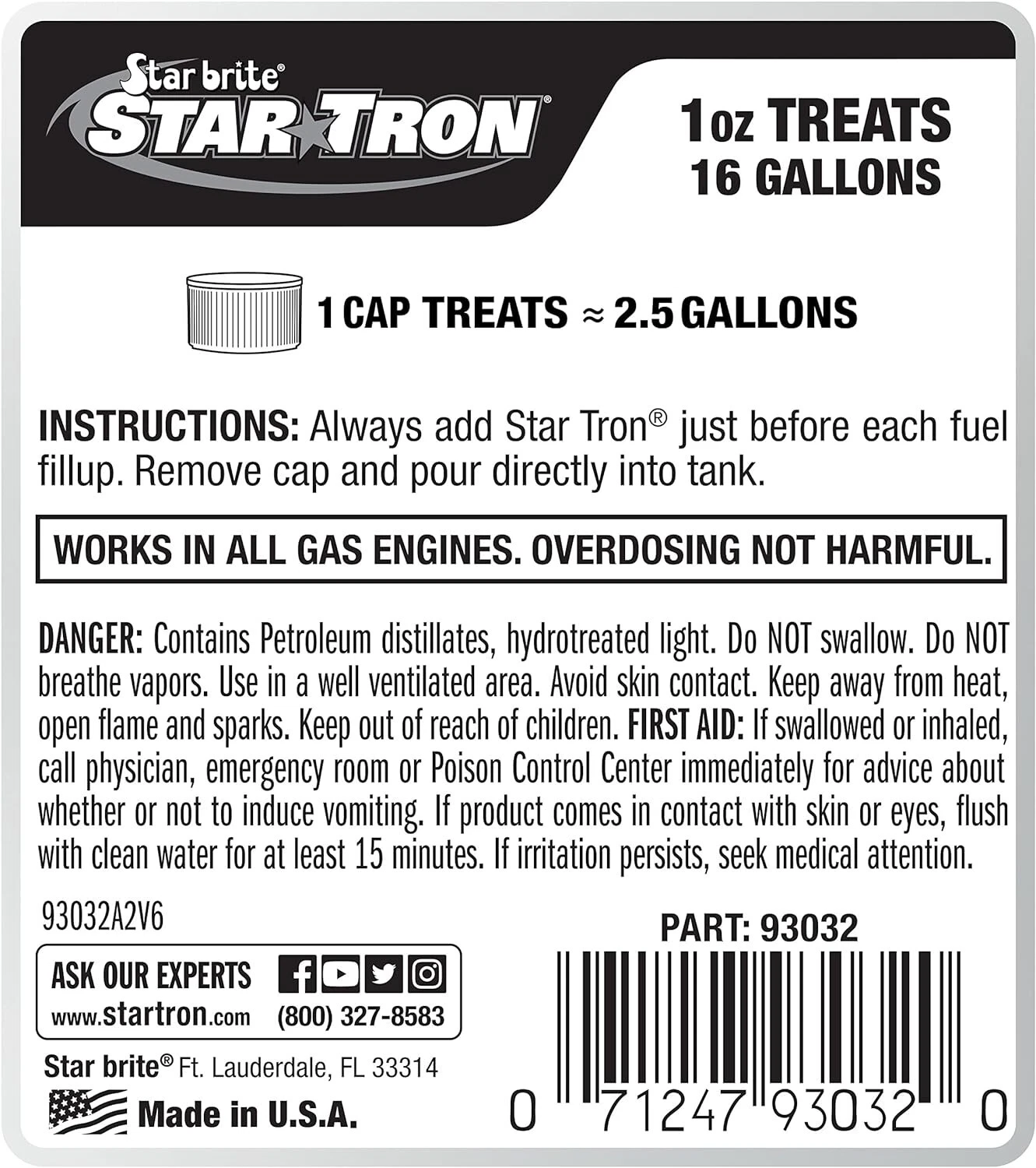 Star Tron can be used in all gas outboards, inboards, cars, trucks, motorcycles, ATVS, snowmobiles, small engines, outdoor power equipment including pre-mix fuel engines. Star Tron is safe for all engines, will not harm oxygen sensors, and overdosing is not harmful.