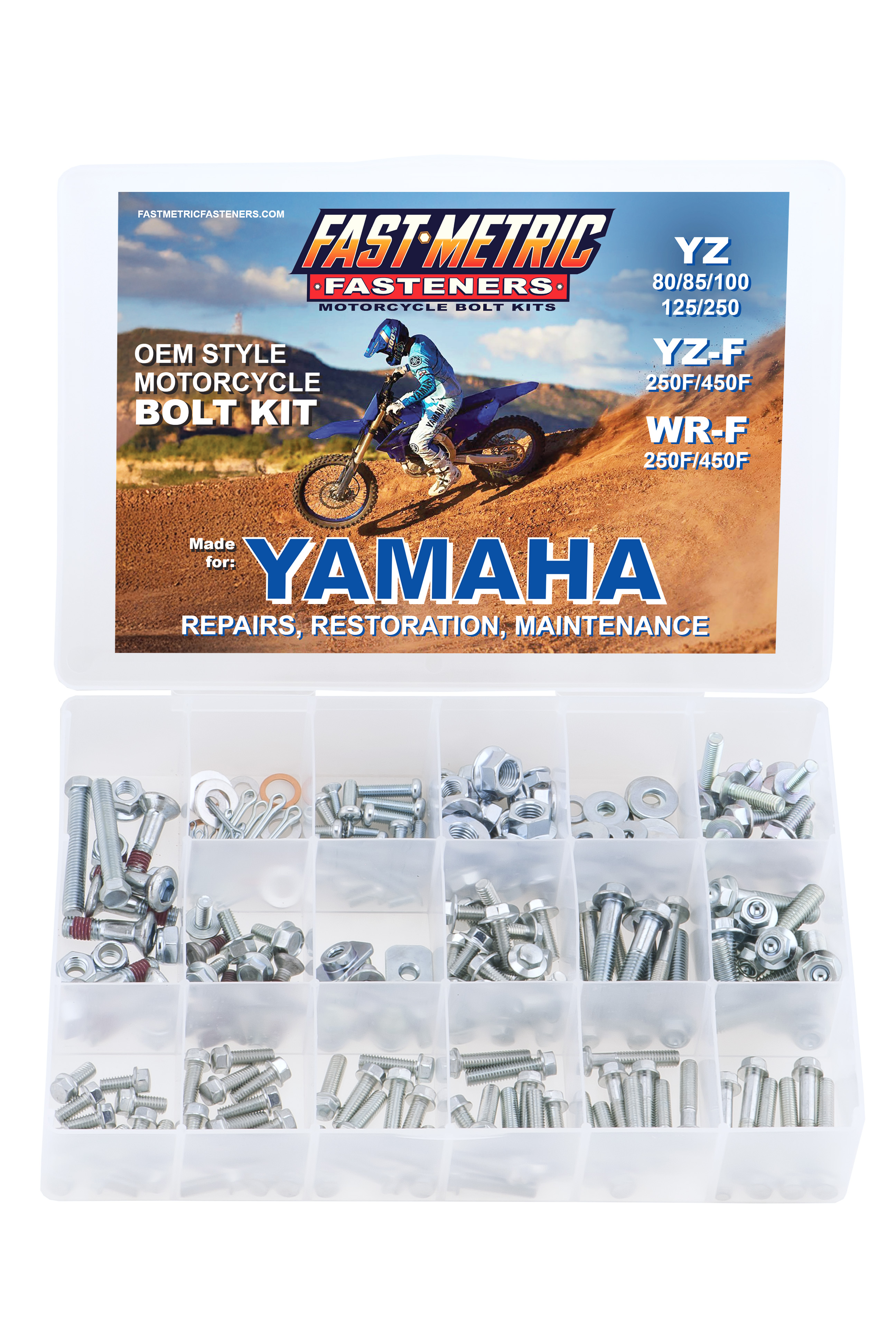 This 250 piece bolt kit has what you need to make accurate OEM repairs and restorations on your Yamaha YZ YZF WR off-road motocross bikes.