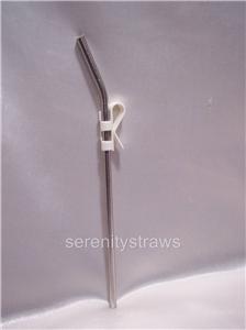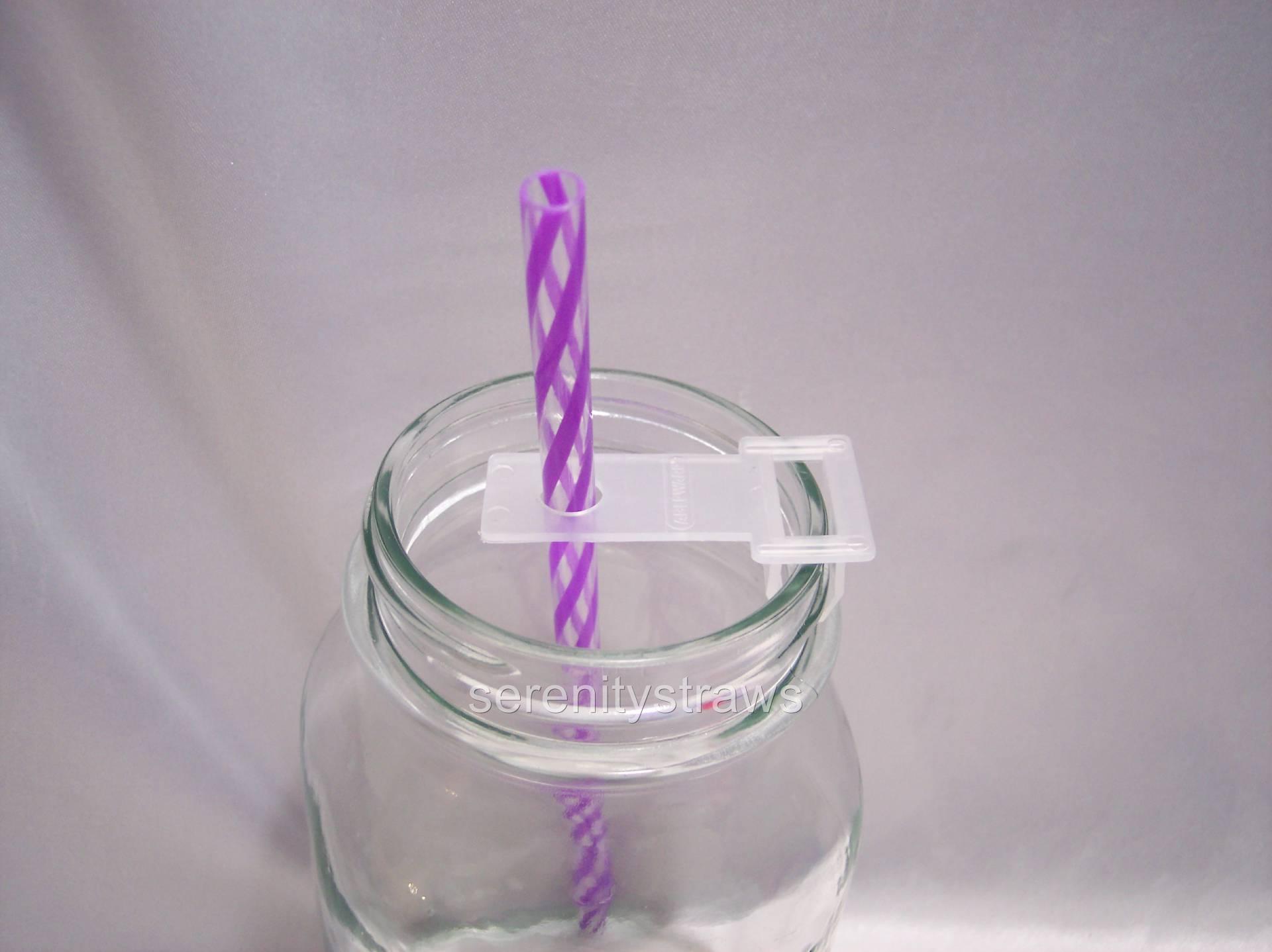 This clip is only for skinny straws!! It does not stretch out to fit wider straws. The only straws I sell that will work with this clip are the "Extra Long Flexible Straws", the "Skinny Straws" & the 1/4" Stainless Steel straws. MEDIUM CLEAR CLIP  This clip will fit most (not all) of my straws. It will not fit my wide, Tervis & Aladdin straws. It can be clipped onto wider glasses, like Mason Jars, etc. You can clip it to thin plastic glasses, but it will wobble. It works with my Swirlys, Clear/Swirlys, Frosty's, Plain, anything 9/32" or less. Straw Holders with Clips designed to assist users who have difficulty holding a drinking straw in place. These plastic drinking straw holders mount onto the edge of a glass or cup to keep a drinking straw in position.