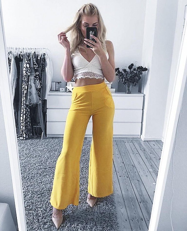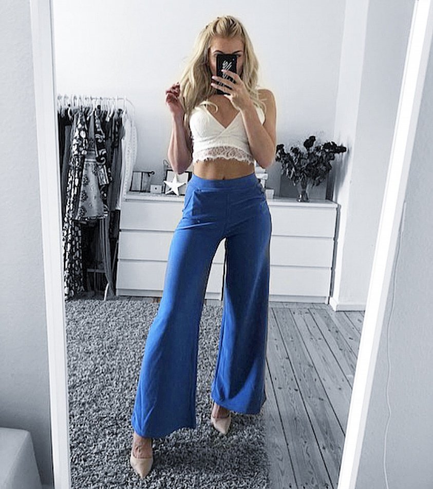 Damen Marlene-Hose Palazzo Hose mit weitem Bein ein absoluter Trend & Must Have für Sommer !!! 100 % Eyecatcher Material: 85% Polyamide 15% Elasthan Elegante Hose mit weitem Bein im Marlene Stil Ideal für Freizeit und Business trip super angenehm und weichem Material bequemer Strecht anteil super sitzend Mit seitlichen Eingrifftaschen. 3 Größen S/M L/XL XXL/XXXL