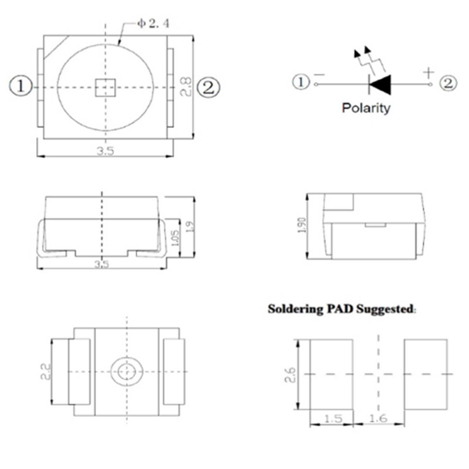 | Size | 12v PLCC2 / 3528 / 1210 Pre-Wired SMD LED |