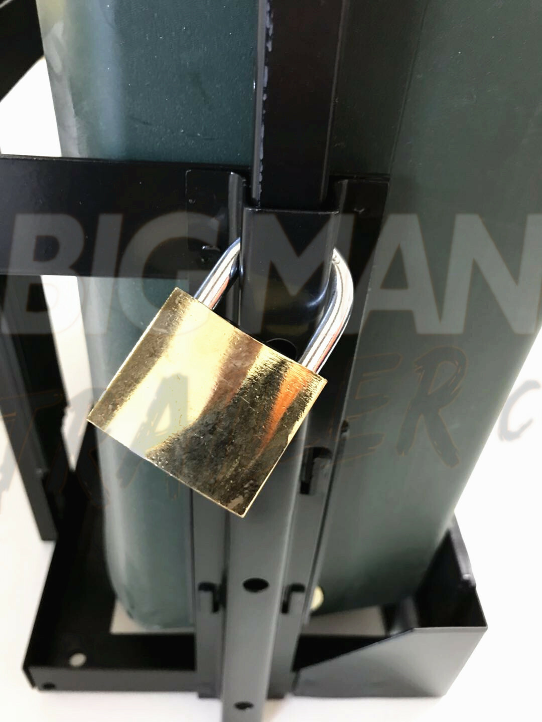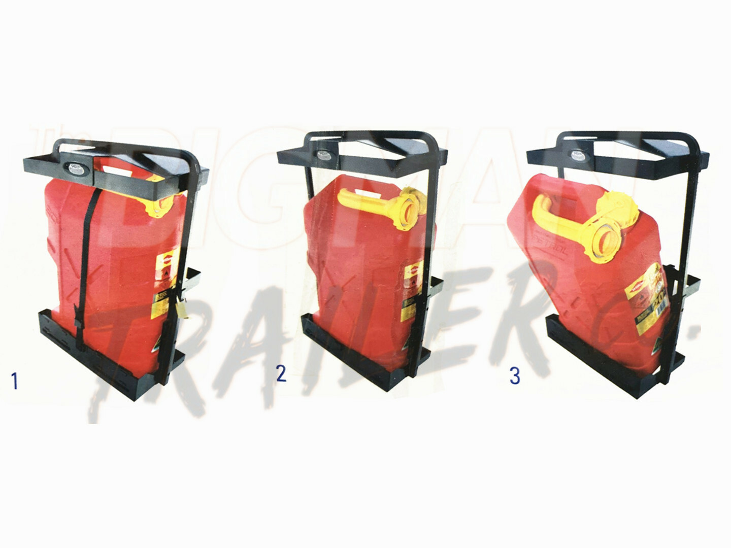 - 1. Front entry jerry can holder in locked position, fitted with padlock and adjustable strap.