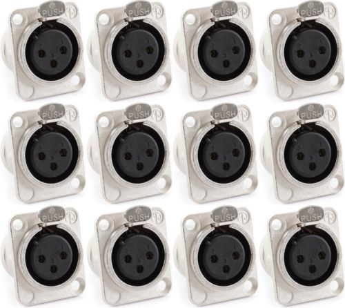 Lot of 12 New and ORIGINAL Neutrik NC3FDL-1 Female XLR Nickel Panel Mount Jacks