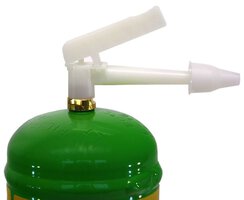 Die Helium-Einwegflasche ist mit einem aufschraubbaren Füllstutzen ausgestattet. Nach entfernen der Sicherheitskappe drehen sie den Ballon-Füllstutzen auf das Gewinde des Heliumbehälters bis Sie einen leichten Wiederstand oder leichtes Ausströhmen von Helium bemerken.