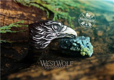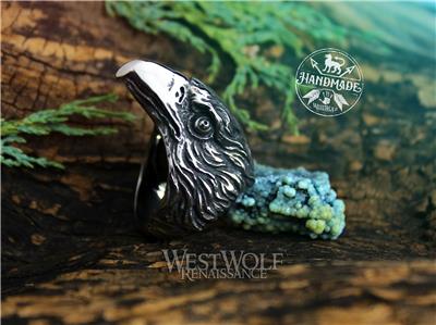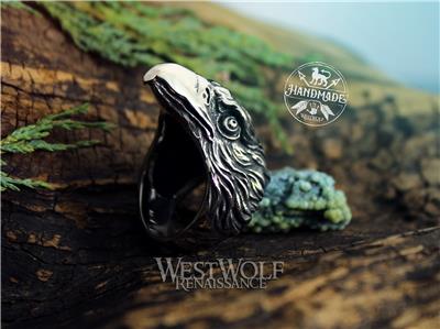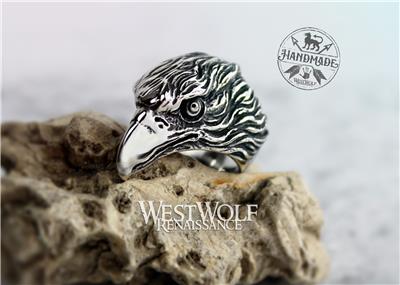 In Norse mythology, eagles symbolized strength and death. When not relying on his ravens Hugin and Munin as scouts, Odin would sometimes take the shape of an eagle to soar high above a battlefield. An enormous eagle was also believed to sit among the topmost branches of Yggdrasil, the World Tree, where it would flap its wings and create the winds in Midgard, the world of humans. Eagle imagery also appeared in jewelry and stone carvings for many centuries throughout Scandinavia. That's why we're offering this majestic eagle head ring which is full of detail and character. This ring is made entirely of Stainless Steel. It is rust-proof, tarnish-proof, and resistant to stains caused by water. We currently have it available in US Ring Sizes 8-12.