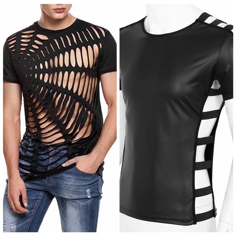 Unisex shiny metallic T-shirt tops, novelty and stylish, slim fit.
