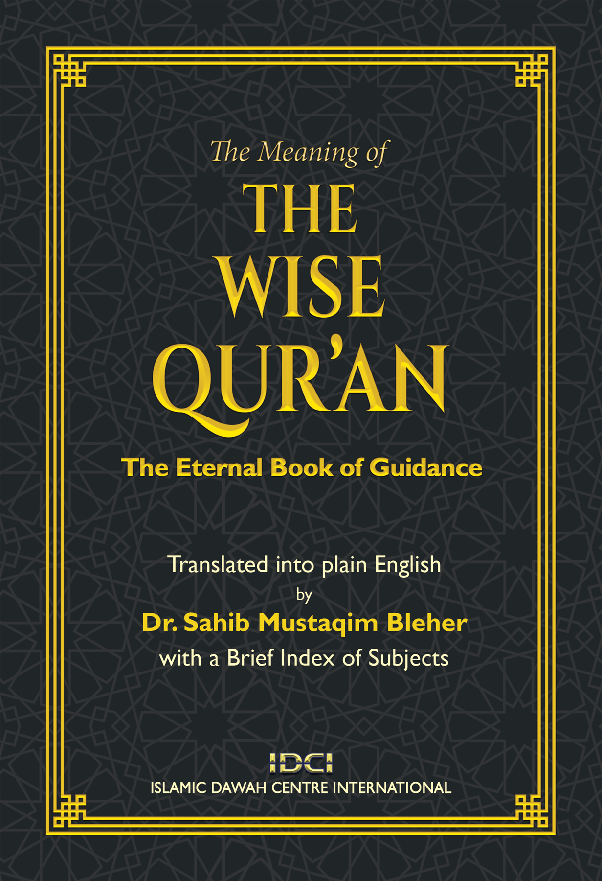 Dr. Sahib Mustaqim Bleher is a convert to Islam who is familiar to Muslims in the UK for both his lectures and booklets on a great variety of subjects. As a professional writer and translator he carefully edited both the Muhammad Pickthall and Yusuf Ali translations of the Qur’an for IDCI to in some way modernise the now antiquated language those translations originally employed whilst being mindful not to alter the approach those translators took when rendering the meaning of the Arabic Qur’an in English. Those editions have been highly popular. With the present volume, the translator dedicated years of his life to produce a highly readable translation of the Qur’anic message of his own which he hopes has remained faithful to the original, expressed in plain English and informed by the classical Islamic texts on the interpretation of the Qur’an (Tafsir). We pray that this translation will open the door to the divine message for a large section of English speakers.