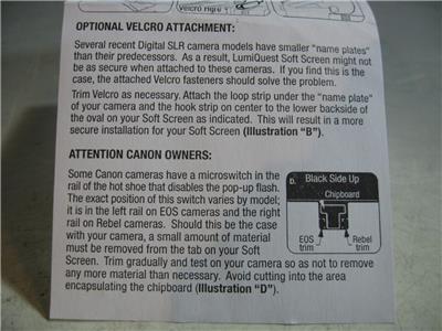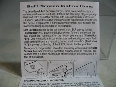 Please click on each picture to see the details of this LumiQuest Soft Screen & Instructions.