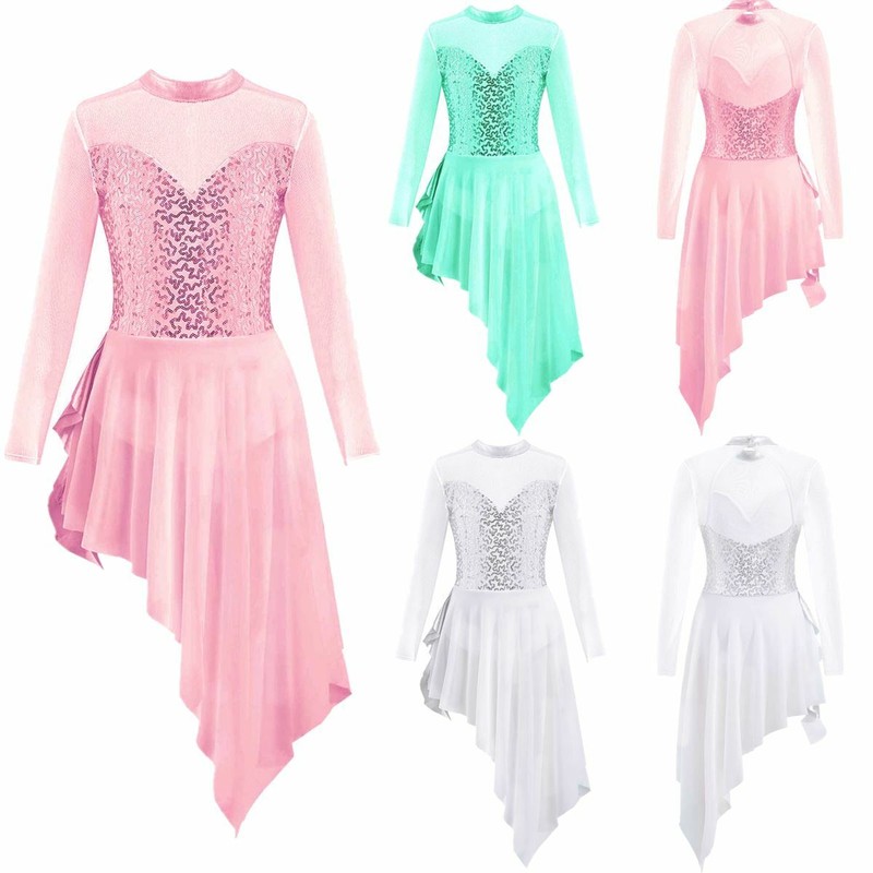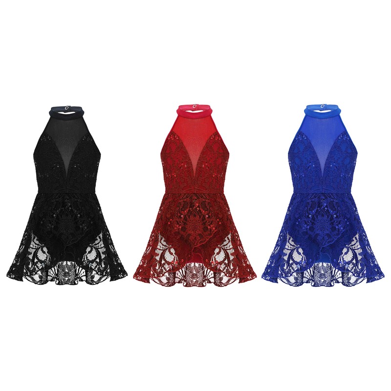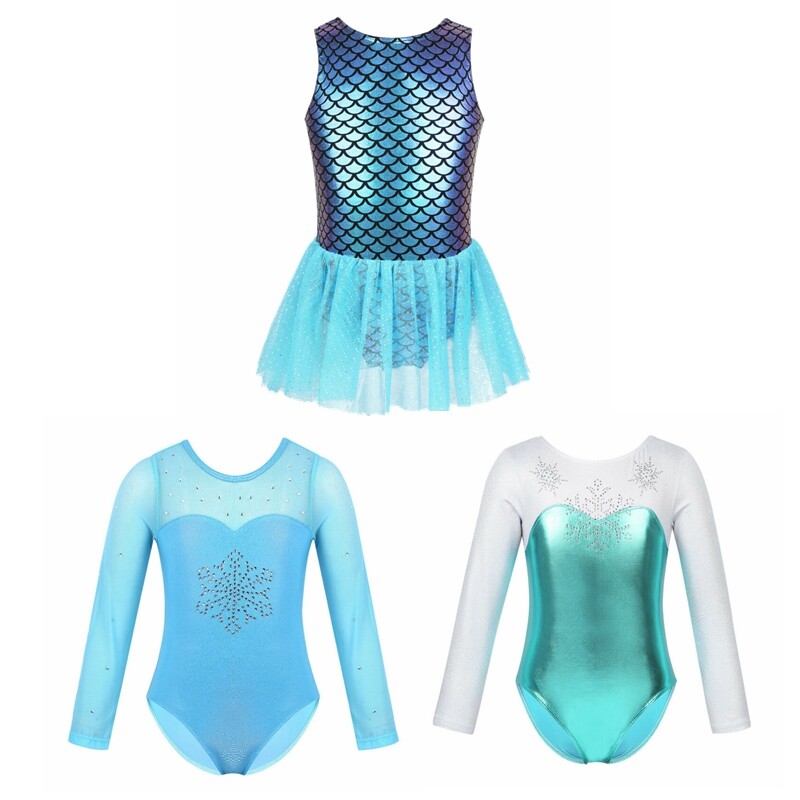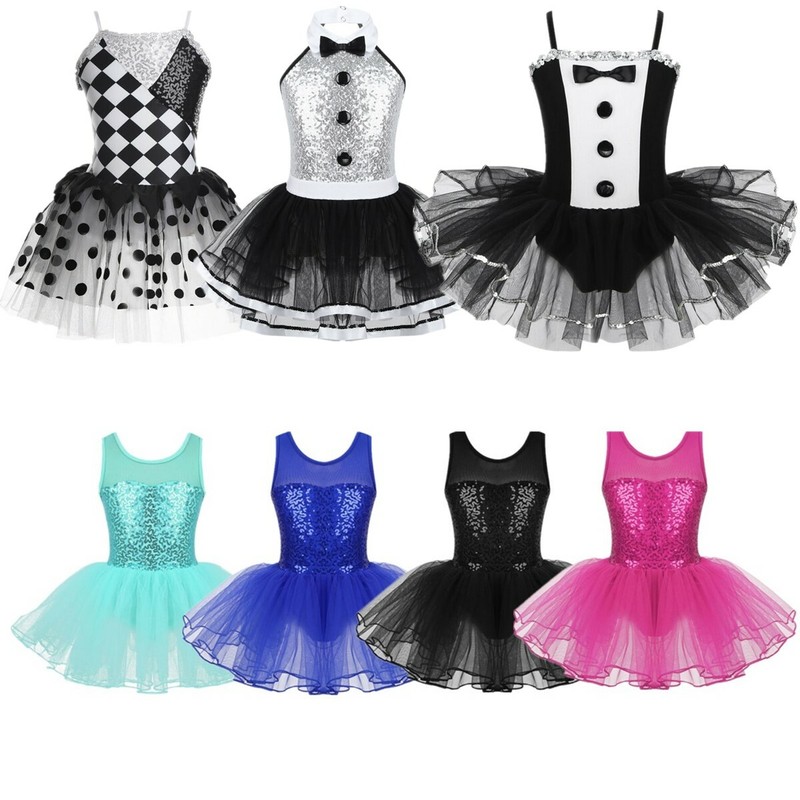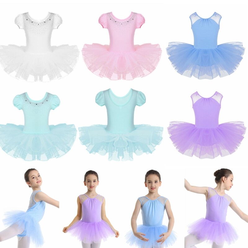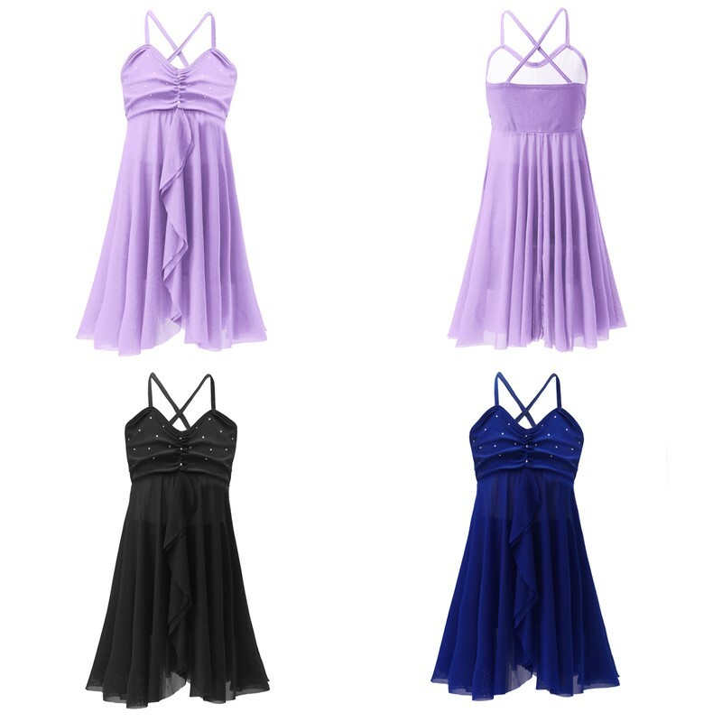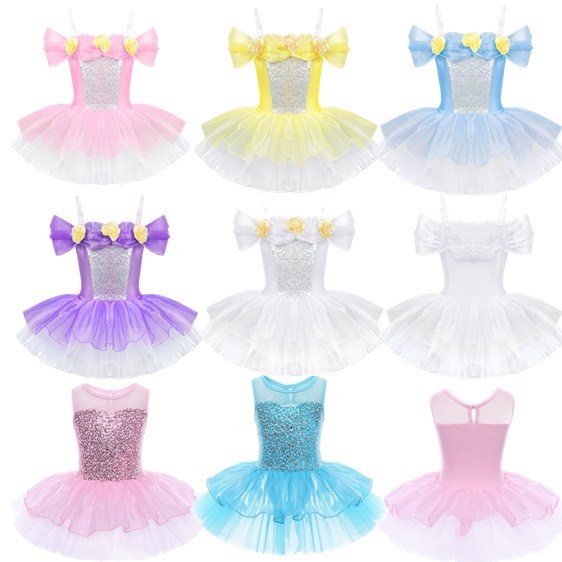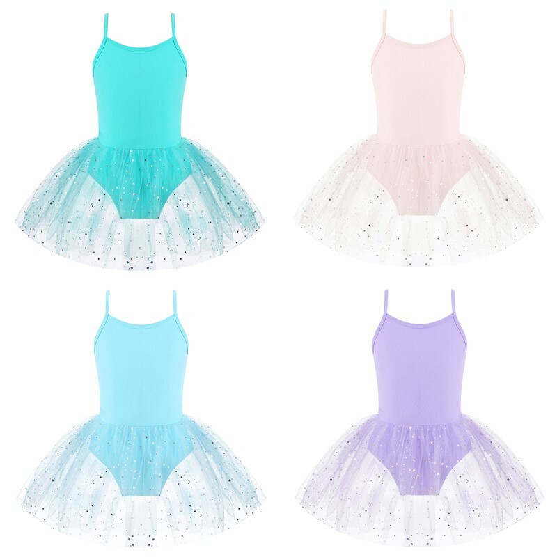 Ballet leotard dress is made of polyester, mesh and sequins material, hand wash.