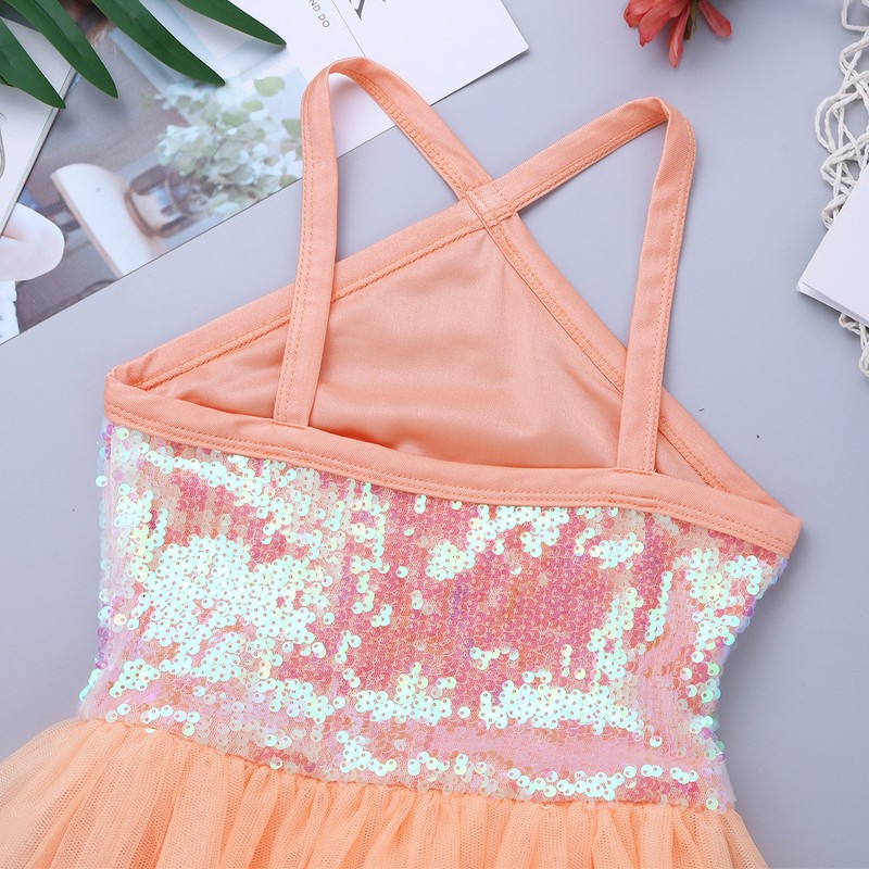 Ballet leotard dress is made of polyester, sequins and mesh material, hand wash.