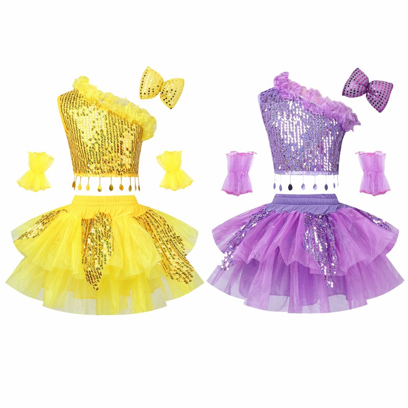 Outfit is made of polyester, sequins material, hand wash recommended.