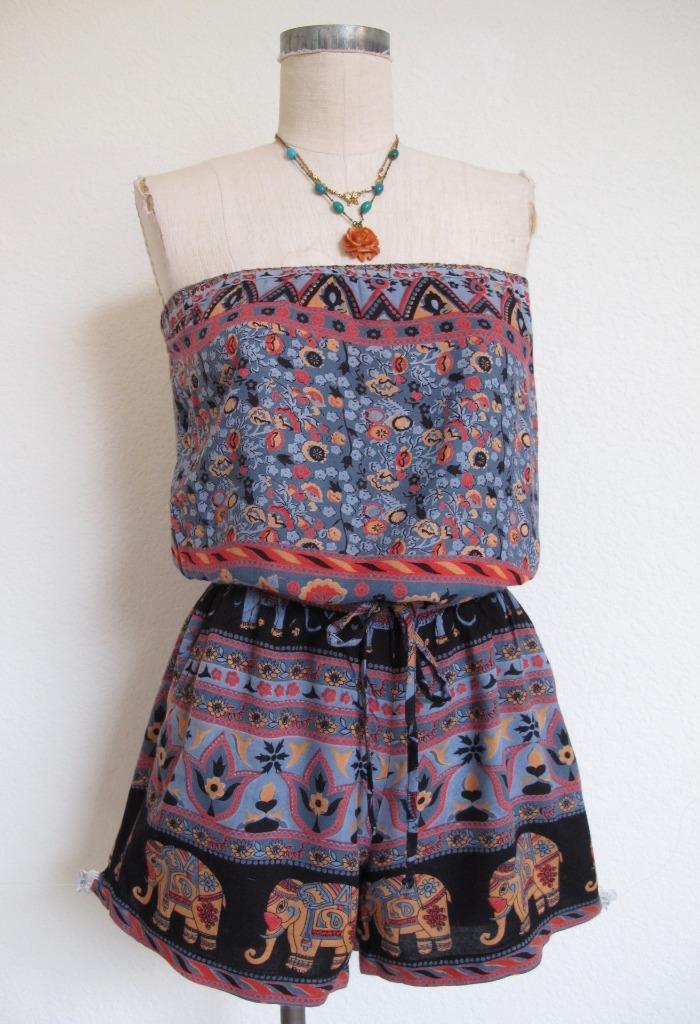 This is a fab boho hippie strapless romper with an wonderful exotic elephant border.