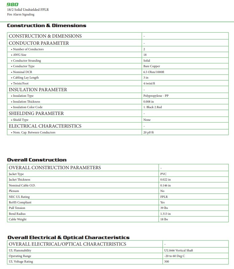 - Solid fire alarm cable