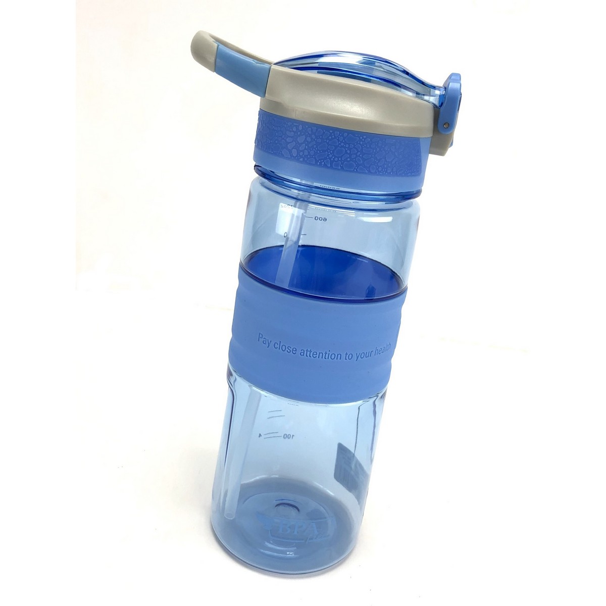 This is a blue lightweight 22oz water bottle. Made from food grade PP (Polypropylene), this material is BPA free. The total capacity of this water bottle is 650ml and suitable for hot or cold beverages. Classic sports bottle feel with a tight seal flip top cap and a straw. The straw makes it perfect for all ages. Internal straw removes for ease of cleaning. Although this bottle can withstand extreme temperatures, it is not recommended to go past 140°F. Cool down hot beverages before pouring into this bottle. Remember to clean with water after each use and avoid highly corrosive substances such as acids or alkalis. This water bottle is ideal for Outdoor activities such as Camping, Hiking, Cycling, Gym, or Sports. No matter what you’re doing it ensures you will be prepared for your next adventure!