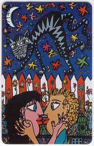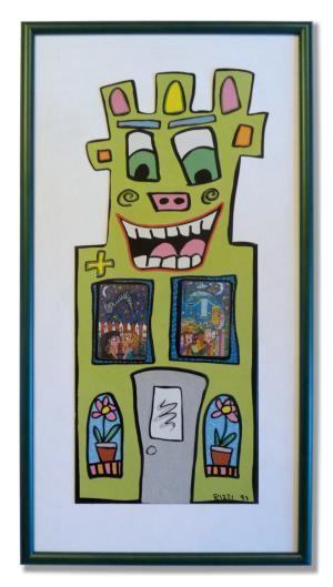Angebot: Tower-Segment GRÜN aus der vierteiligen Kollektion Inklusive: Zwei orginal deutsche Kunst-Telefonkarten von James Rizzi