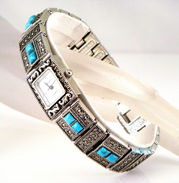 vibrant spider turquoise stones. This watch is reminiscent of antique Edwardian/Victorian marcasite jewellery....words are just not enough to