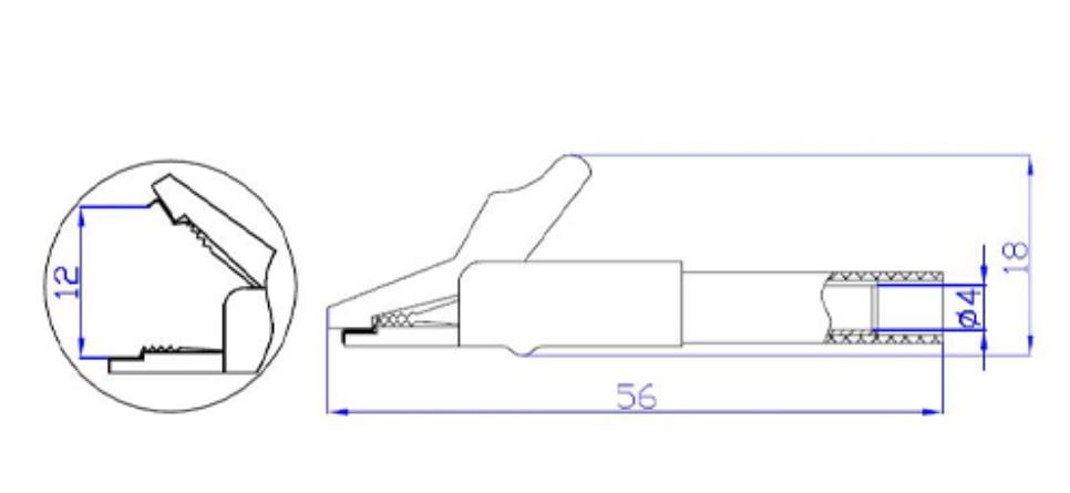 ![]() Type: 4mm Banana Jack Test Alligator Clip Jaw Open: 12mm(Max.) Length:56mm Material: PA Nylon + Brass Nickel Plated Rating: CATII 300V/15A max Connection: Connect with 4mm banana cable connector Weight:3.4g (1Pc) |