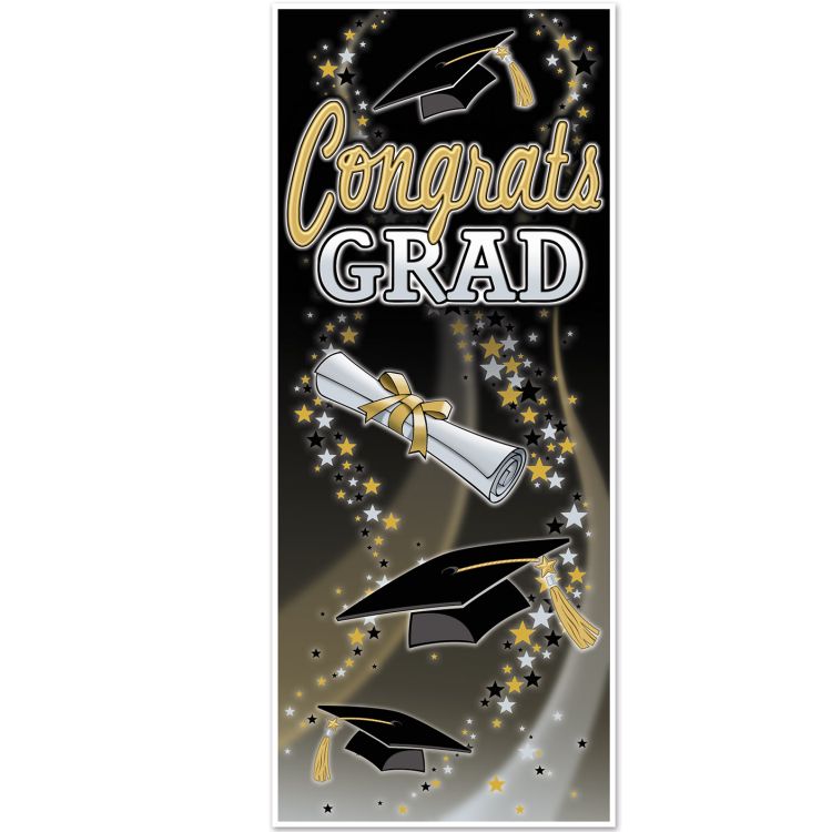 Congrats Grad All Weather Door Cover 30" x 6' Gold Black Graduation Decorations