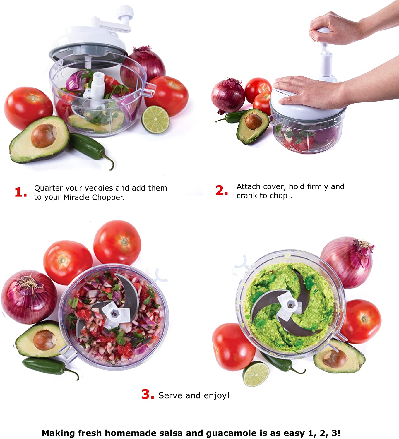 Miracle Chopper Manual Food Processor Salsa Maker, Blender, Slicer and Julienne