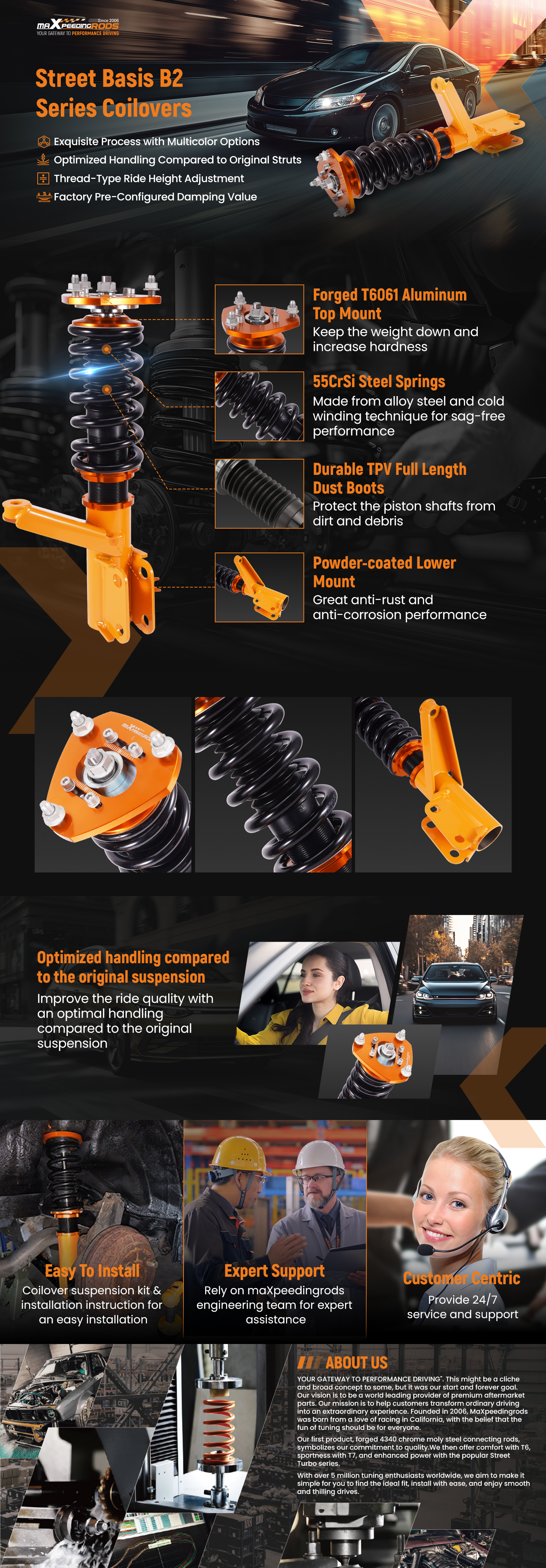 - Height adjustable: Yes, lowering 25-75mm depending on the vehicle models