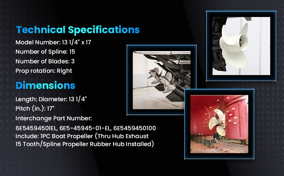 13 1/4 x 17 Propeller Prop 3 Blade For YAMAHA 50-140HP Outboard Brand New