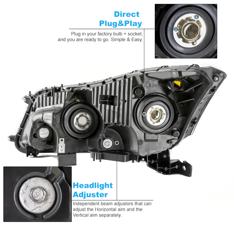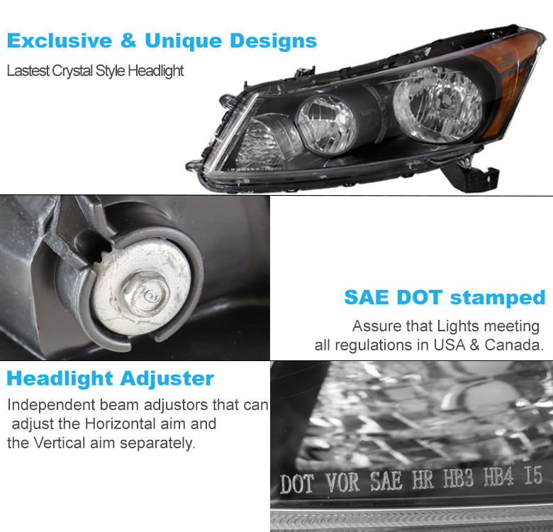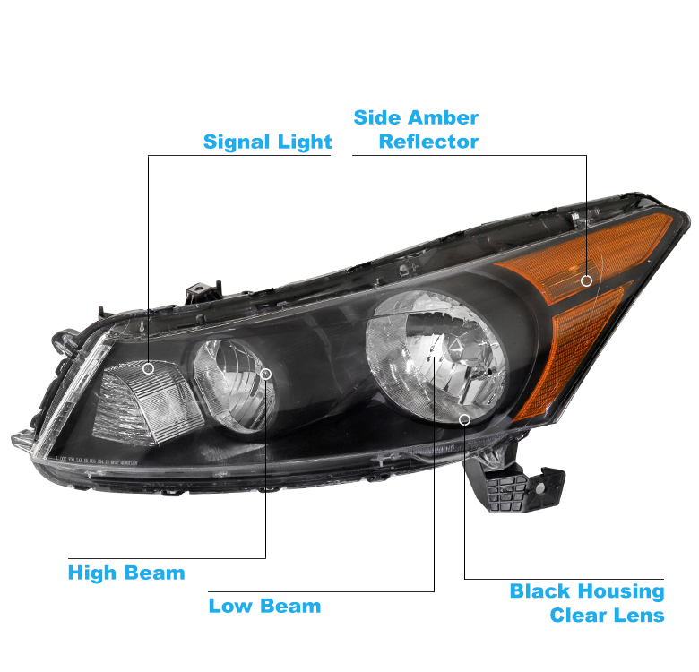 For 2008-2012 Accord Sedan 4DR Replacement Headlights Headlamps with 6.25" White LED DRL Lights - Black | ||||||||||||||||||||