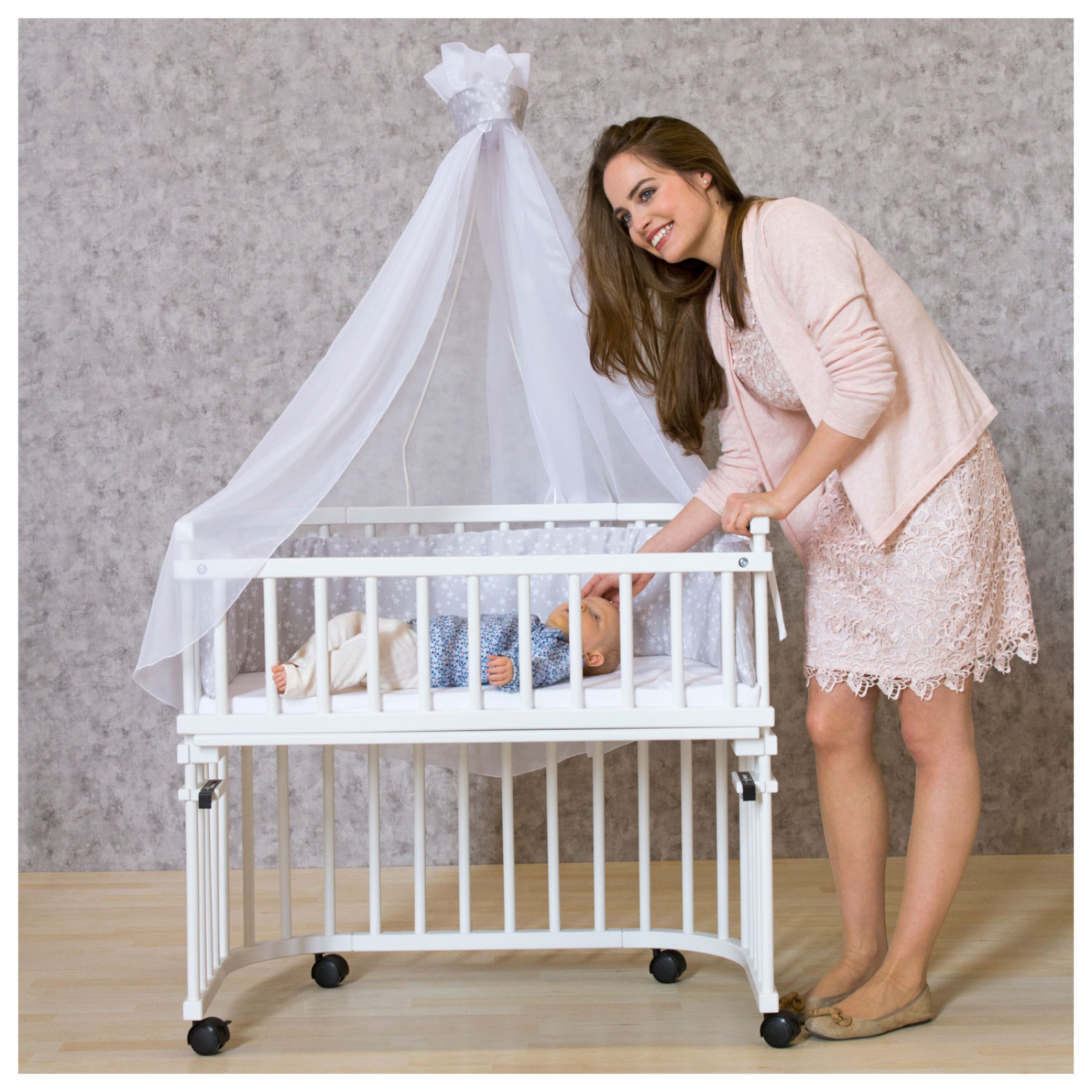 Mit diesem Parkettrollensatz, in Verbindung mit dem passenden Verschlussgitter, verwandeln Sie Ihr babybay® im Handumdrehen zu einem vollwertigen Stubenwagen.