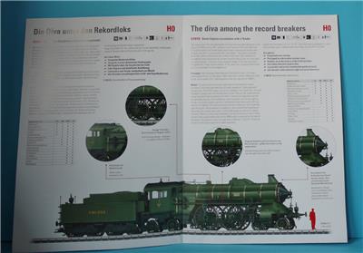 Description: New Marklin Fall (Autumn) New Items for 2015 Catalogue (40 pages) in English and 'Diva with a Blue Ribbon' (Diva mit blauen Band) Flyer in English. The flyer opens out to a full A2 (4 times the size of A4 and a bit too big to photograph) poster. This is a special flyer about Marklin's model of the record breaking 4-4-4, class S 2/6 of the Bavarian State Railways at the start of the last century.