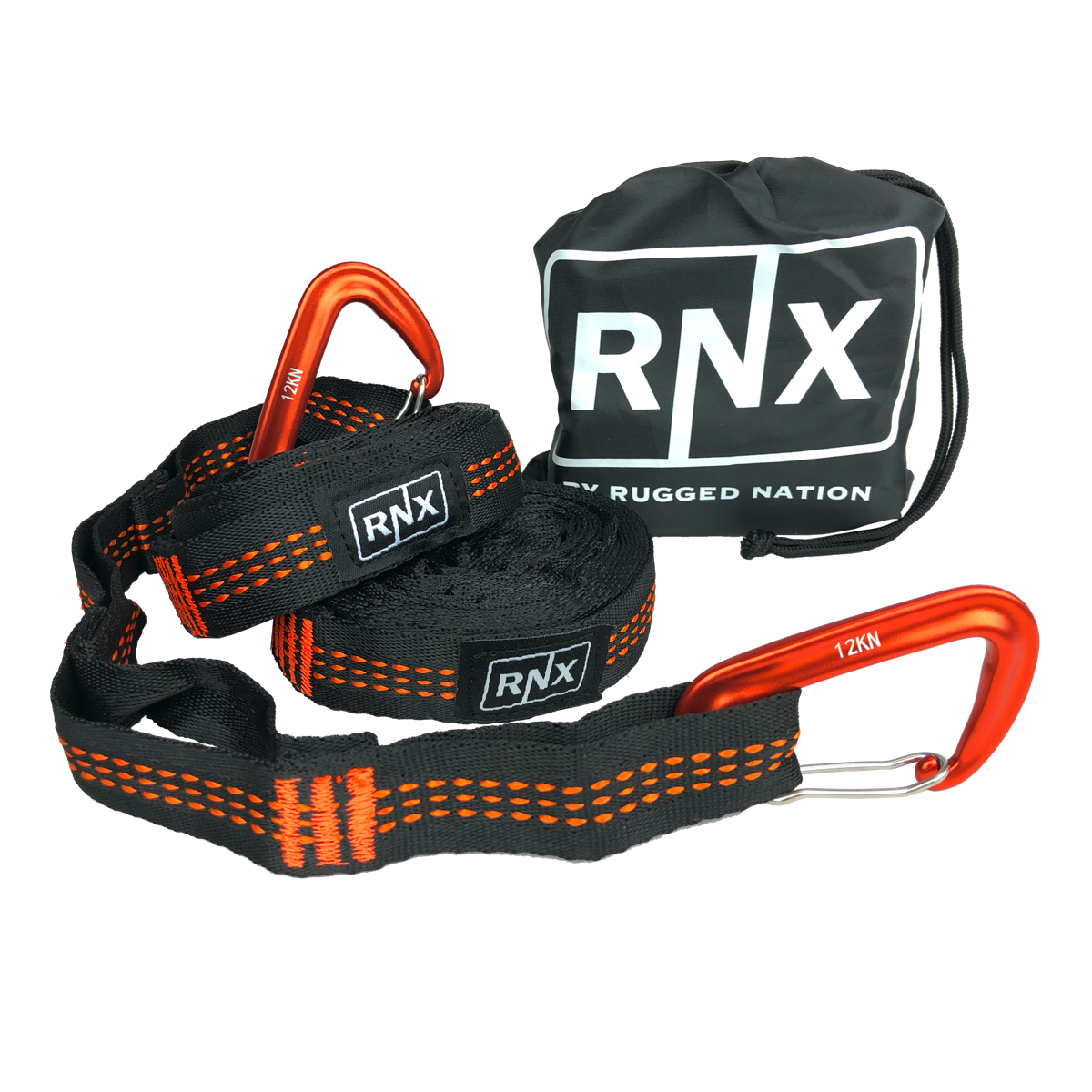 This is a custom designed RNX black with orange stitching 2,000lb (combined strength), 20ft total length hammock strap kit. Our experts have triple stitched these straps to give them superior strength. Between the two straps you get a combined strength resistance of 2,000lbs, 20ft in length, and 20 attachment loops for easy positioning. Replace weak and faulty straps with these RNX hammock straps that are built to last. Made from top of the line quality Polyester, these straps will provide you with uninterrupted sleeping time from dusk to dawn. These RNX hammock straps are excellent for all outdoor activities such as camping, hiking, backpacking, your backyard, or the beach. Rest well and relax in your fully supported hammock so you will be prepared for your next adventure!