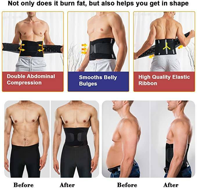 ►►Waist Trainer Training Trimmer Belt: Made of comfortable & adjustable & stretchy fabric, Flexible and durable, 100% Neoprene Stretchy Comfortable Finest Fabric, which means it is easy to clean, fits to your body, and will not pitch or irritate your skin. double-adjustment Hook&Loop adjustment for sizing accuracy mesh backing for breathability. Great for postpartum belly abodomn corset ►►Weight Loss Belt-Our trimmer belt is made of Neoprene,polyester,which help the waist trimmer belt to be more flexible adding for the wearer.The slimming belt does not stab or jab like some other stomach belt do.Most of you would be looking to burn fat and calories.The whole point of this waist trimmer is to wear the belt while exercising and help burn more fat in your stomach area by basically making you sweat as if you had sauna around your belly ►►Design of Tummy Trimmer belt-Wide enough to cover the stomach area and stay put during exercise;Thick enough to produce the heat and burn the fat,move the cellulite and expel toxins.Hook&Loop closure to make sure that the belt is fastened tightly around the abs. Our tummy trimmer belt has a good amount of Hook&Loop to make people of many different sizes able to wear this trimmer belt easily.A spandex belt provides more cinching ability for this trainer ►►Tummy Tuck & Back Support-Our best waist trimmer belt is very stretchy in the right places and provides tons of support on your sides and back.Provides instant abdominal compression and lumbar support.The slimming waist cincher does not dig into your skin and lays flat all the way around.If you have lower back issues,our waist trainers,like a compression binder around the waist to offer lumbar support,help relieve pain and improve posture
