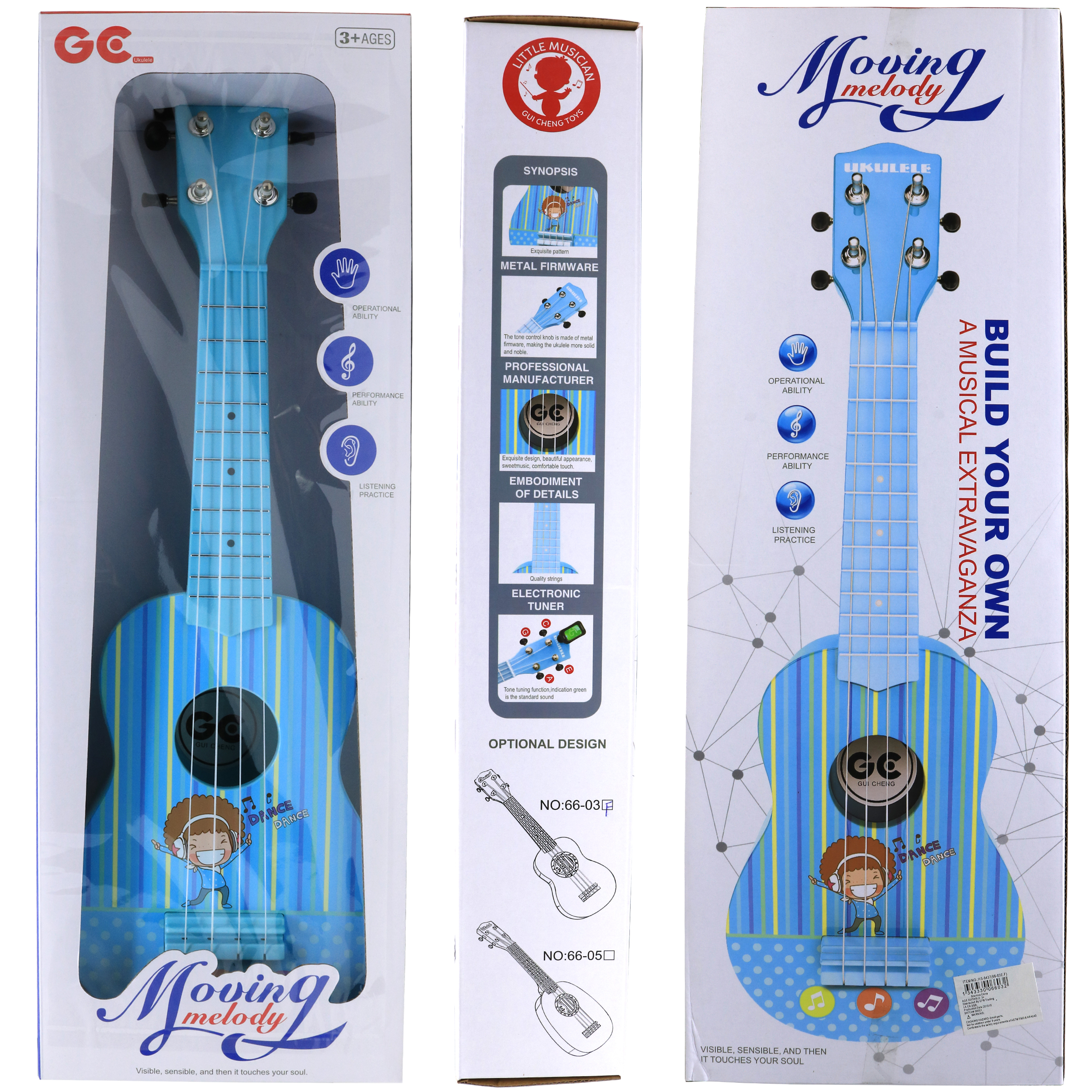 Retailery Toy Soprano Ukulele, 21 Inch, 4 String, Blue. For your little musician. This toy ukulele is a great option for children who demonstrate interest in music. Light plastic construction is perfect for small children. Great for pretend play, this toy can help with cognitive and motor skills. A great gift option for birthdays and Holidays! The ukulele measures 21 inches in length. Features: This toy soprano ukulele features fun bright blue color design, 4 gear style tuning heads, light plastic construction, 4 plastic strings! Includes: 21" Toy Soprano Blue Ukulele. Warning: Choking Hazard - small parts. Not suitable for children under 3 years.