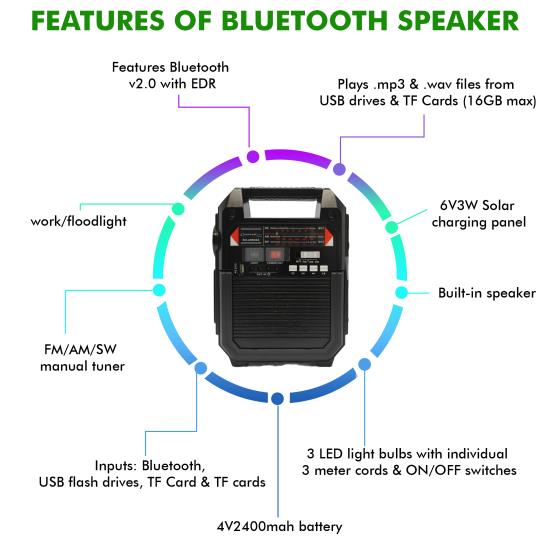 New Technical Pro 9 in1 Solar-powered Bluetooth Speaker Lighting Unit With Radio