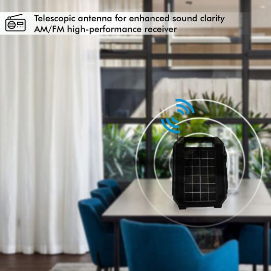 Technical Pro Adventure Series 9-In-1 Solar Am/Fm/Short Wave Adventure Radio With Led Lights, Bluetooth & Power Bank.