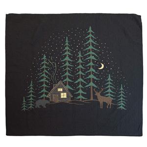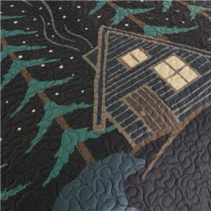 This eye-catching, 3-piece quilted microfiber bedding collection from Donna Sharp, features a cabin under the stars, surrounded by pine trees and forest animals.