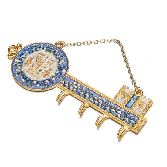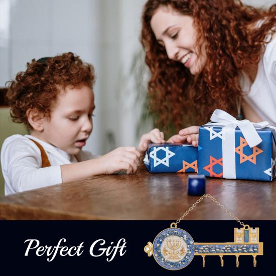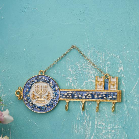 Matashi Hand-Painted Enamel Menorah Jerusalem Cityscape Design Decorative Hanging Wall Hooks, Wall Decor for Living Room Entryway Hallway, Gift for Housewarming Ceremony, House Blessing Gift