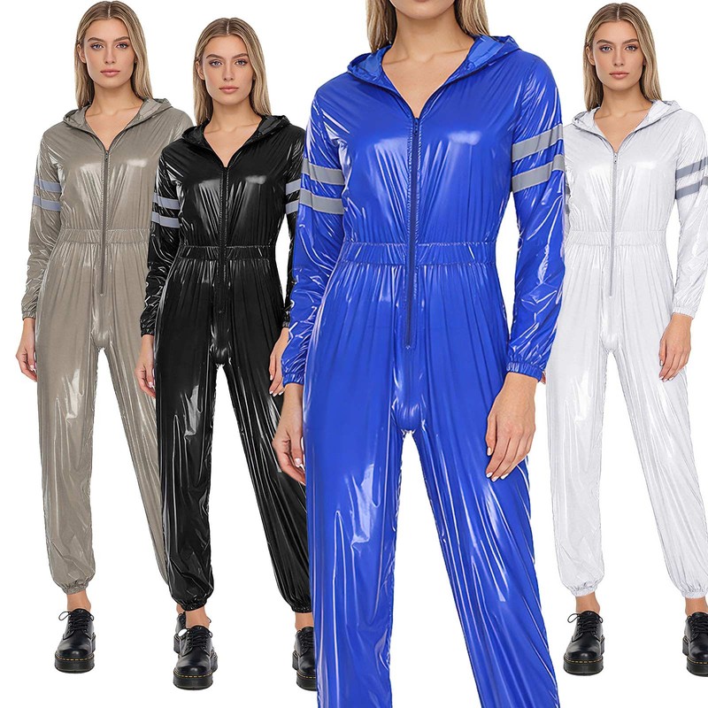 Women ladies one-piece patent leather leotard bodysuit, wet look appearance.