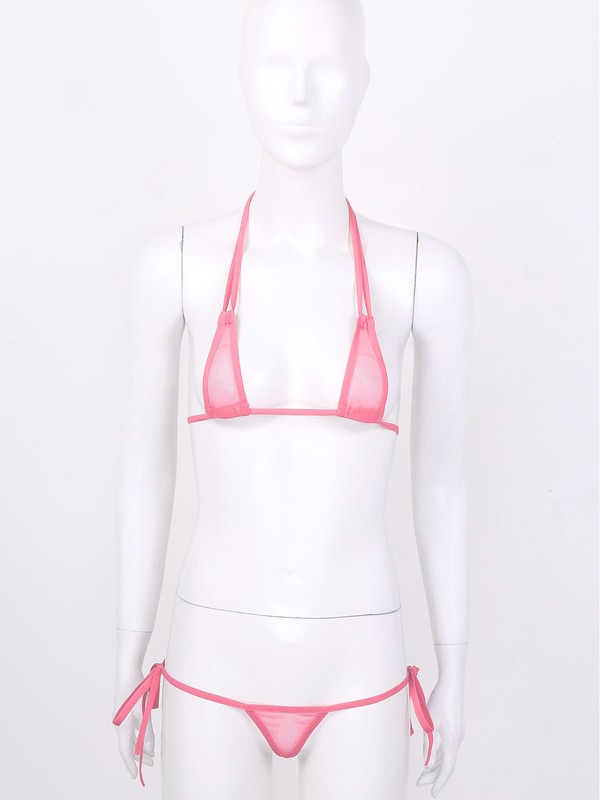 Women See-through Mesh Strappy Micro Bikini Set Triangle Swimsuit Bathing Suit.