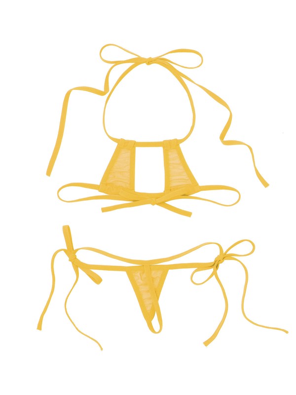 Micro bikini set include halter neck bra tops and T-back, spicing up your nightlife.