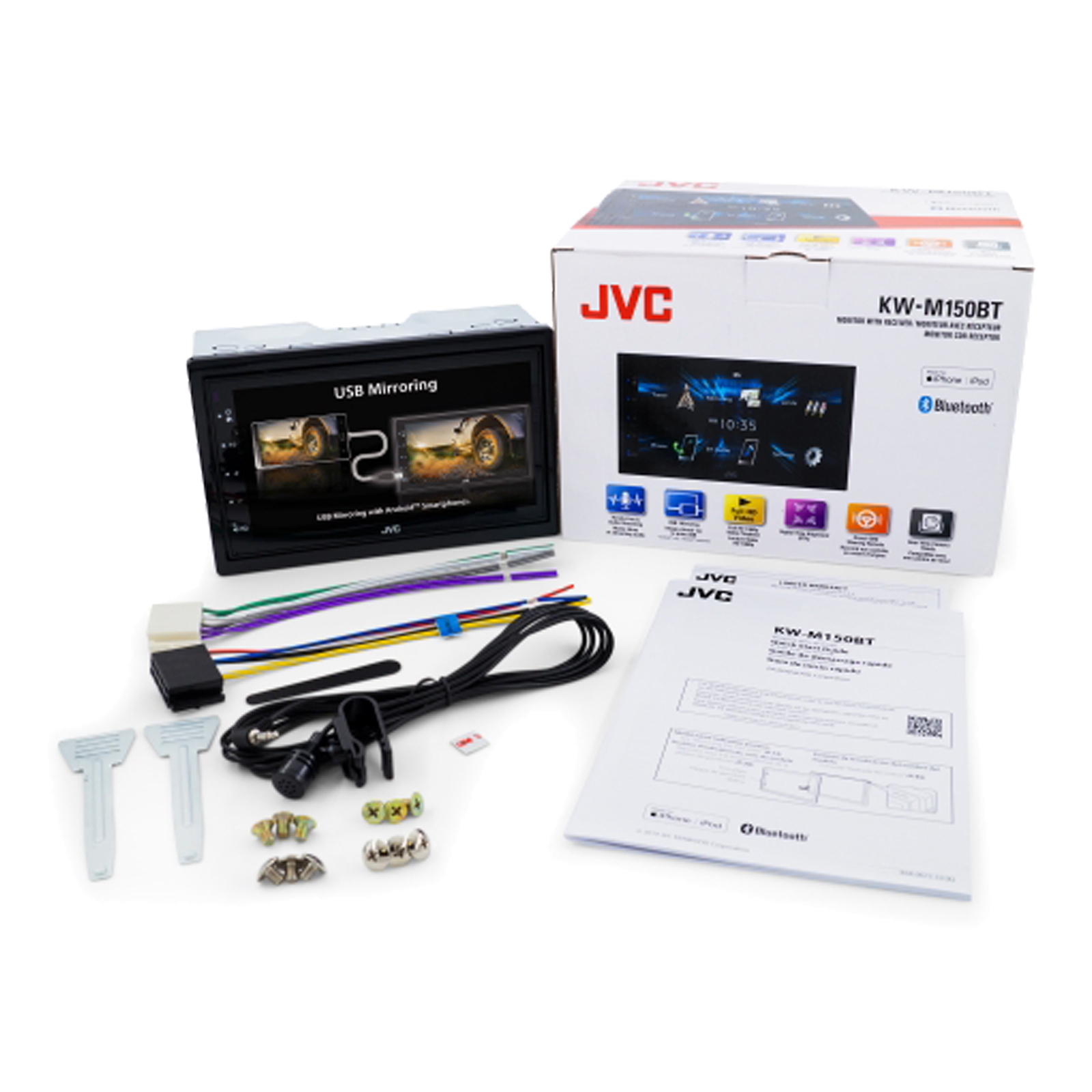 JVC KW-M150BT WVGA Touchscreen Double DIN Digital Media Bluetooth USB AM/FM Stereo Receiver