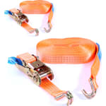 Cette sangle de fixation de qualité supérieure dune longueur de 8 mètres dispose dune force de traction de 1500 kg et dune capacité de charge de 3000 kg maximum. Cette sangle a été pré-étirée avant de rejoindre notre sélection en ligne. Cela permet tout simplement déviter que la sangle se distende à lusage. Ce produit de qualité supérieure permet de sécuriser les marchandises transportées en toute simplicité. On place la sangle au centre de la marchandise à sécuriser avant de lenfiler dans la pince de fermeture. Le cliquet stable en acier résistant à la corrosion permet de resserrer la sangle de manière à fixer la marchandise pour la protéger de glissements. On peut défaire la sangle en toute simplicité en appuyant sur la pince de sécurité. Cette sangle en deux parties est la solution idéale pour transporter des marchandises de façon sécurisée dans des camions, containers, wagons de marchandises ou avions. Bien entendu, elle est également parfaite pour un usage privé, par exemple pour transporter une moto ou déménager.