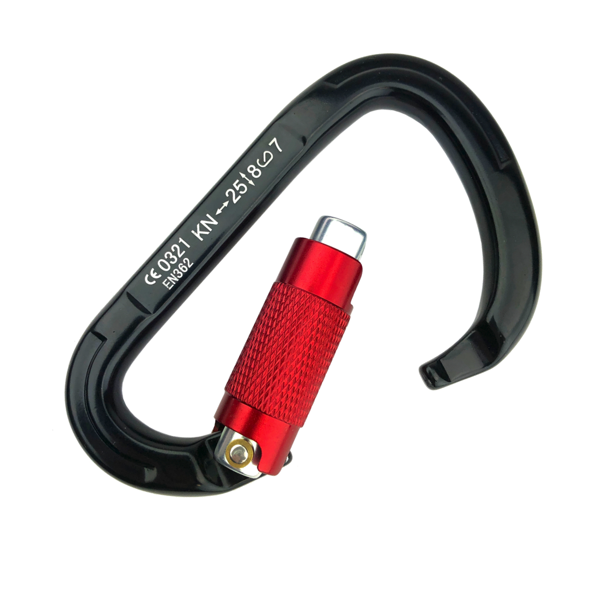 This is a heavy-duty climbing carabiner made from aircraft grade 7075 aluminum alloy. It is heavy-duty and can stand 5,500lbs/25KN pull force. This is a Twist Lock D-Ring carabiner that auto locks for quick use and ease. Rotate the lock by hand to open and lock. The lock mechanism has smooth edges to help protect your ropes and prevent failure. Its compact D shape design measures 5