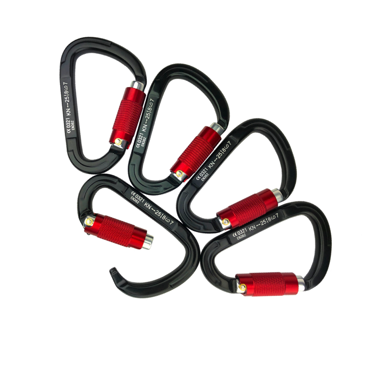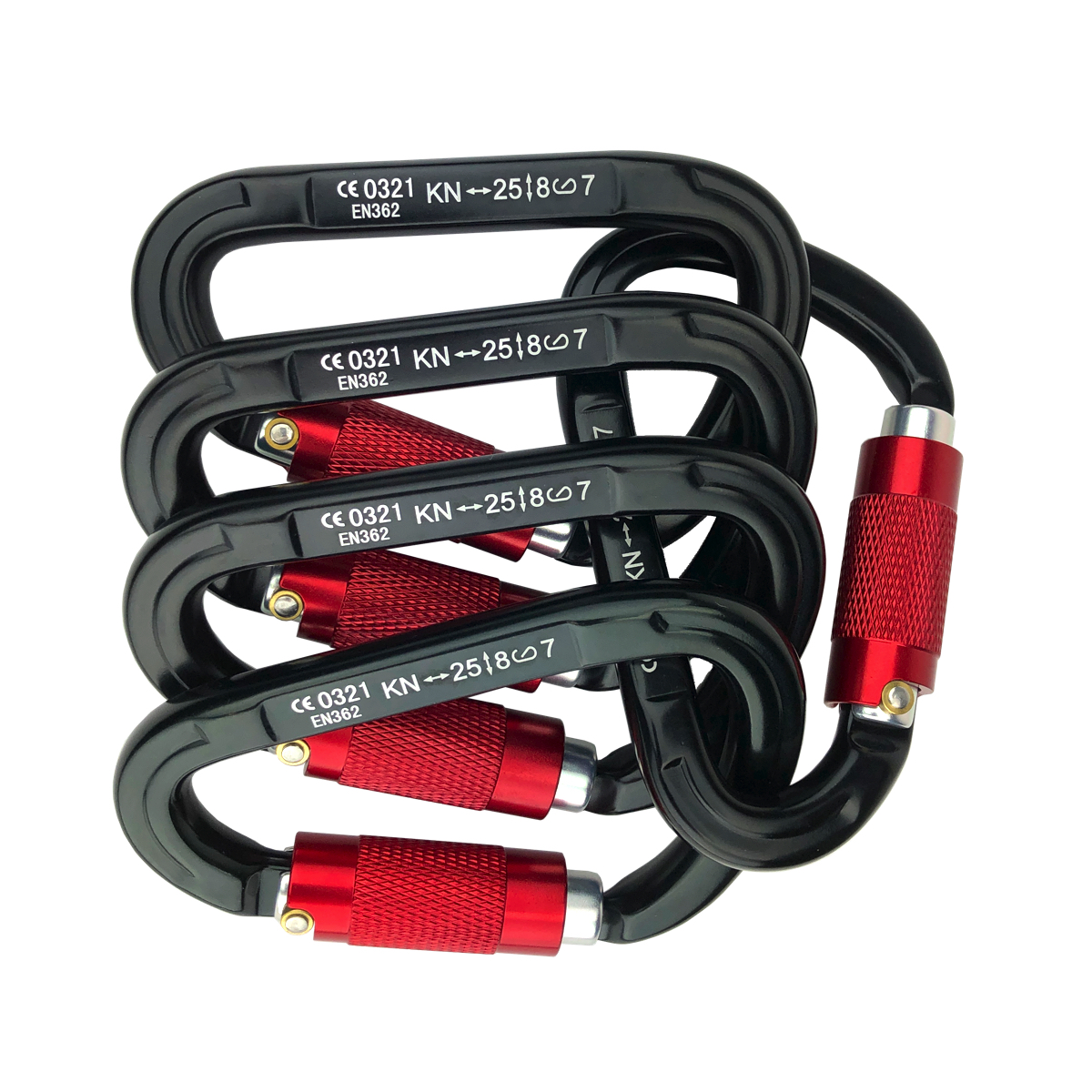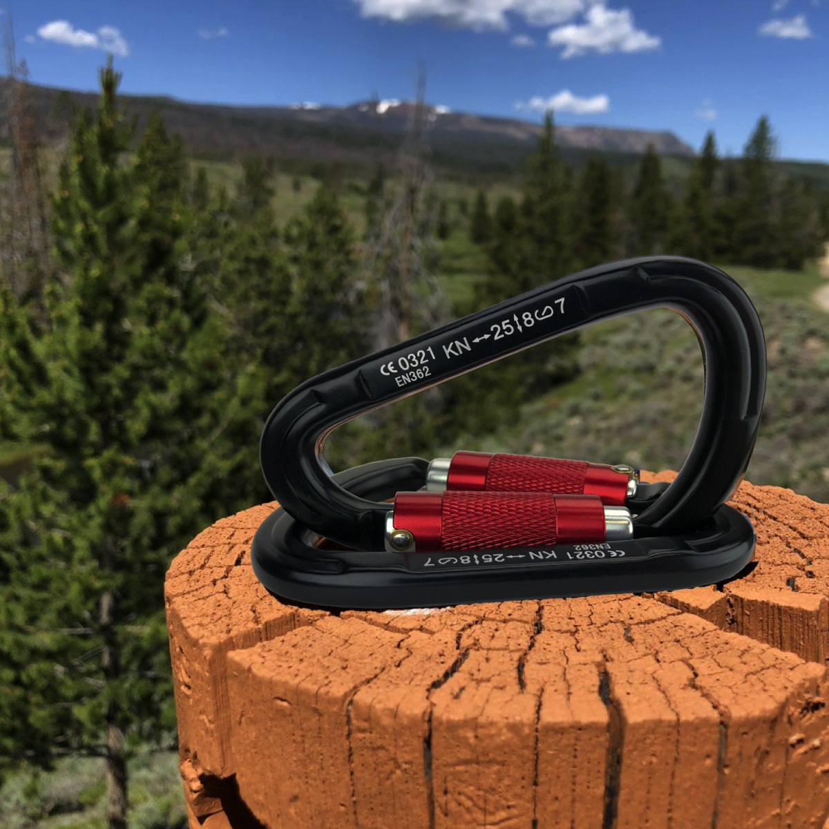 This is a heavy-duty climbing carabiner made from aircraft grade 7075 aluminum alloy. It is heavy-duty and can stand 5,500lbs/25KN pull force. This is a Twist Lock D-Ring carabiner that auto locks for quick use and ease. Rotate the lock by hand to open and lock. The lock mechanism has smooth edges to help protect your ropes and prevent failure. Its compact D shape design measures 5 inches.